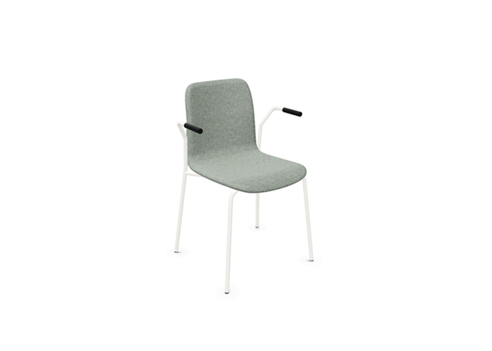 Sittskal i formpressad plywood klädd med kallskum, vilket ger både komfort och stöd. Stabilt pulverlackat stativ av ø 18 mm rör med möbeltassar för att skydda golvet. Armstöd finns som tillval. För ännu större flexibilitet finns kopplingsbeslag samt radkopplingsbeslag (säljs separat) som gör det enkelt att skapa rader eller gruppsittningar. Maxvikt 110 kg. Stolen är stapelbar upp till 6 enheter.