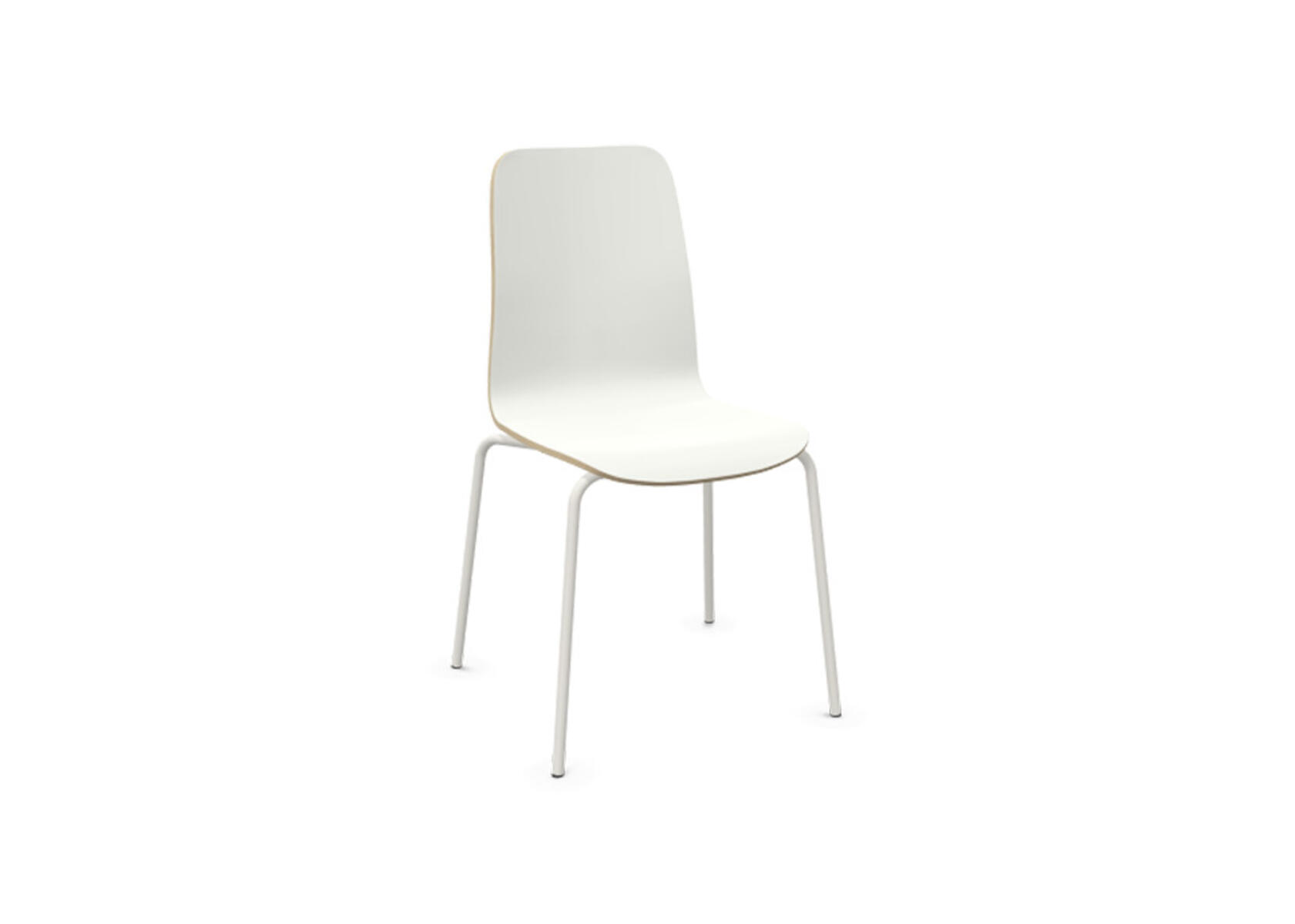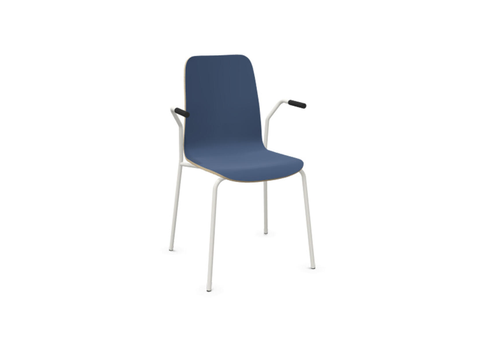 Sittskal i formpressad plywood belagd med högtryckslaminat. Stabilt pulverlackat stativ av ø 12 mm rör med möbeltassar för att skydda golvet. Armstöd finns som tillval. Maxvikt 110 kg. Stolen är stapelbar upp till 6 enheter.