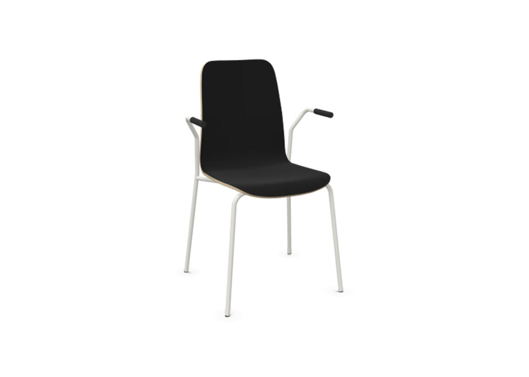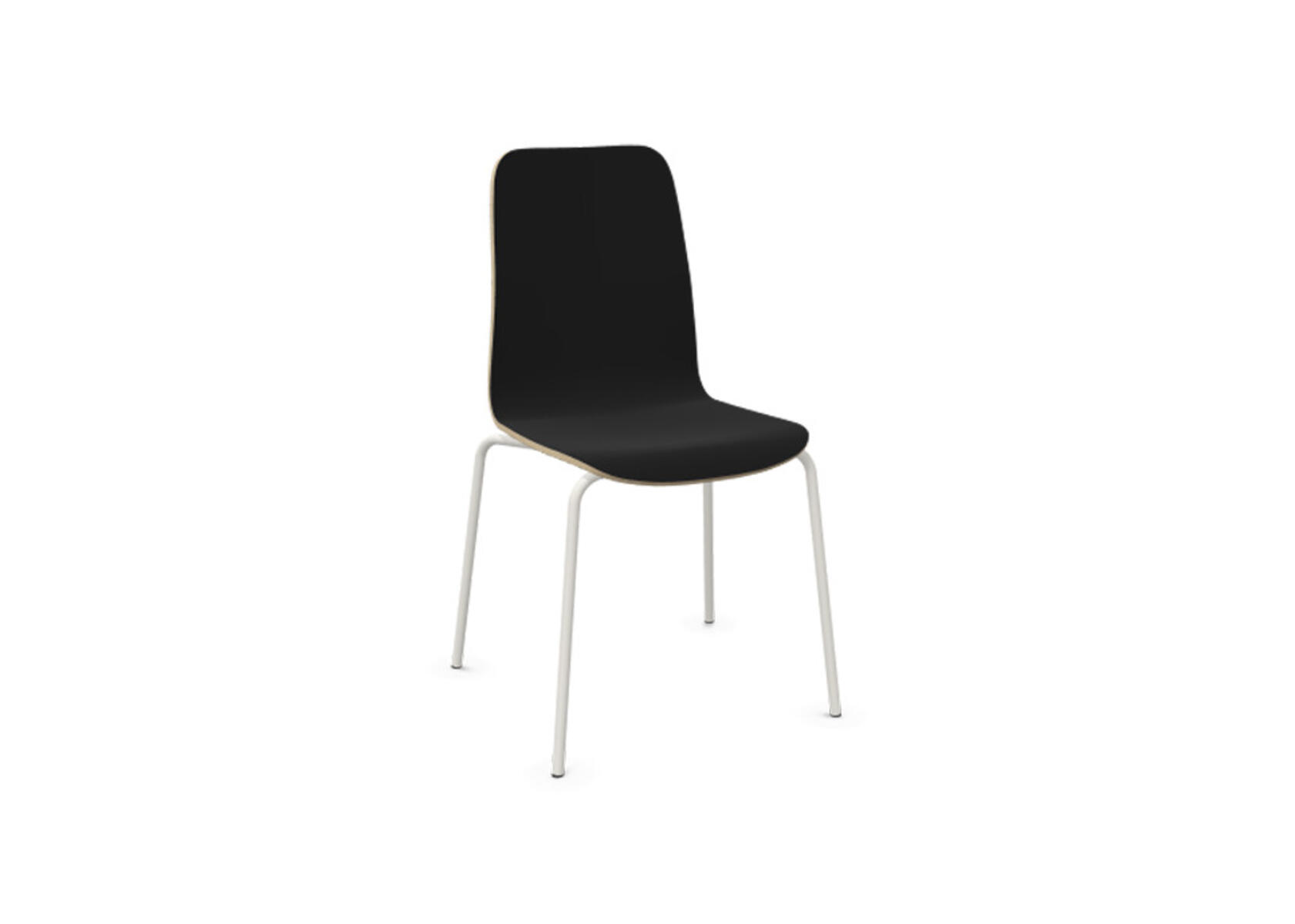 Sittskal i formpressad plywood klädd med kallskum, vilket ger både komfort och stöd. Stabilt pulverlackat stativ av ø 18 mm rör med möbeltassar för att skydda golvet. Armstöd finns som tillval. För ännu större flexibilitet finns kopplingsbeslag samt radkopplingsbeslag (säljs separat) som gör det enkelt att skapa rader eller gruppsittningar. Maxvikt 110 kg. Stolen är stapelbar upp till 6 enheter.