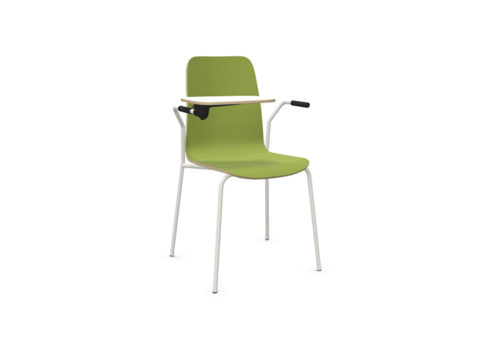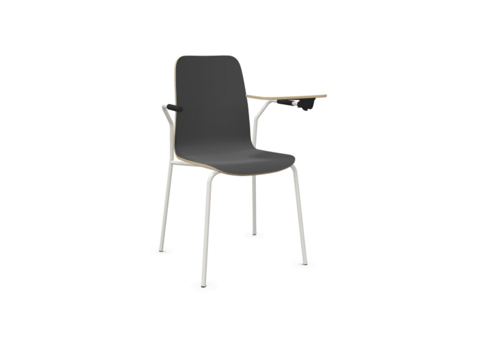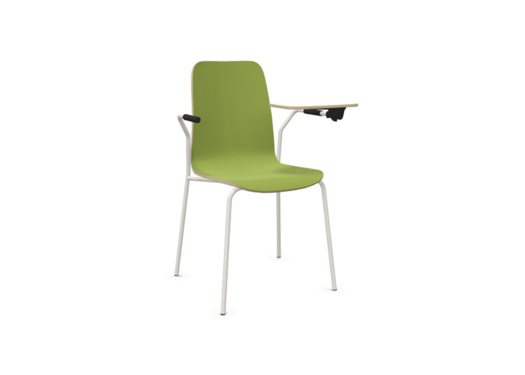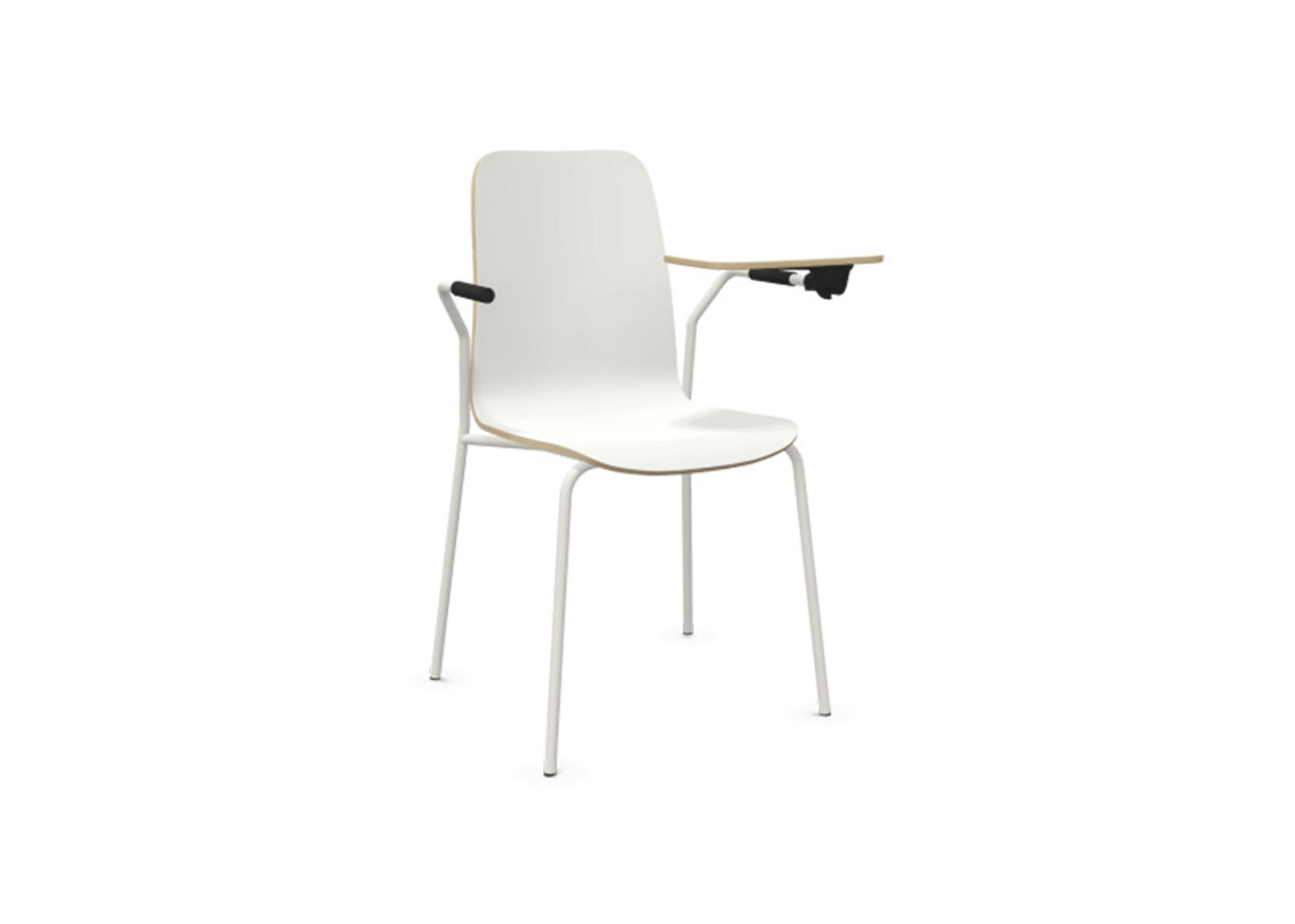Sittskal i formpressad plywood belagd med högtryckslaminat. Stabilt pulverlackat stativ av ø 18 mm rör med möbeltassar för att skydda golvet. Skrivskiva i plywood belagd med laminat, tjocklek skrivskiva 10,5 mm. För ännu större flexibilitet finns kopplingsbeslag samt radkopplingsbeslag (säljs separat) som gör det enkelt att skapa rader eller gruppsittningar. Maxvikt 110 kg. Stolen är ej stapelbar.