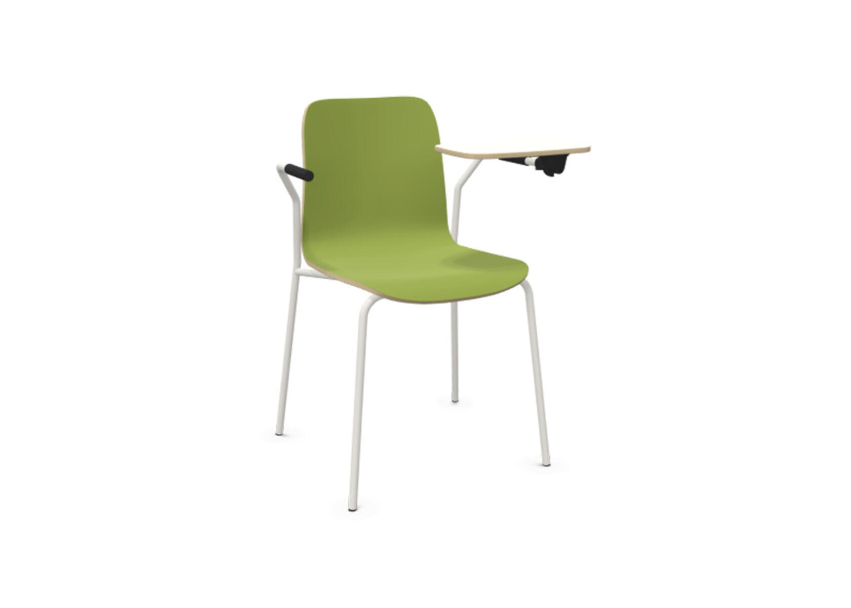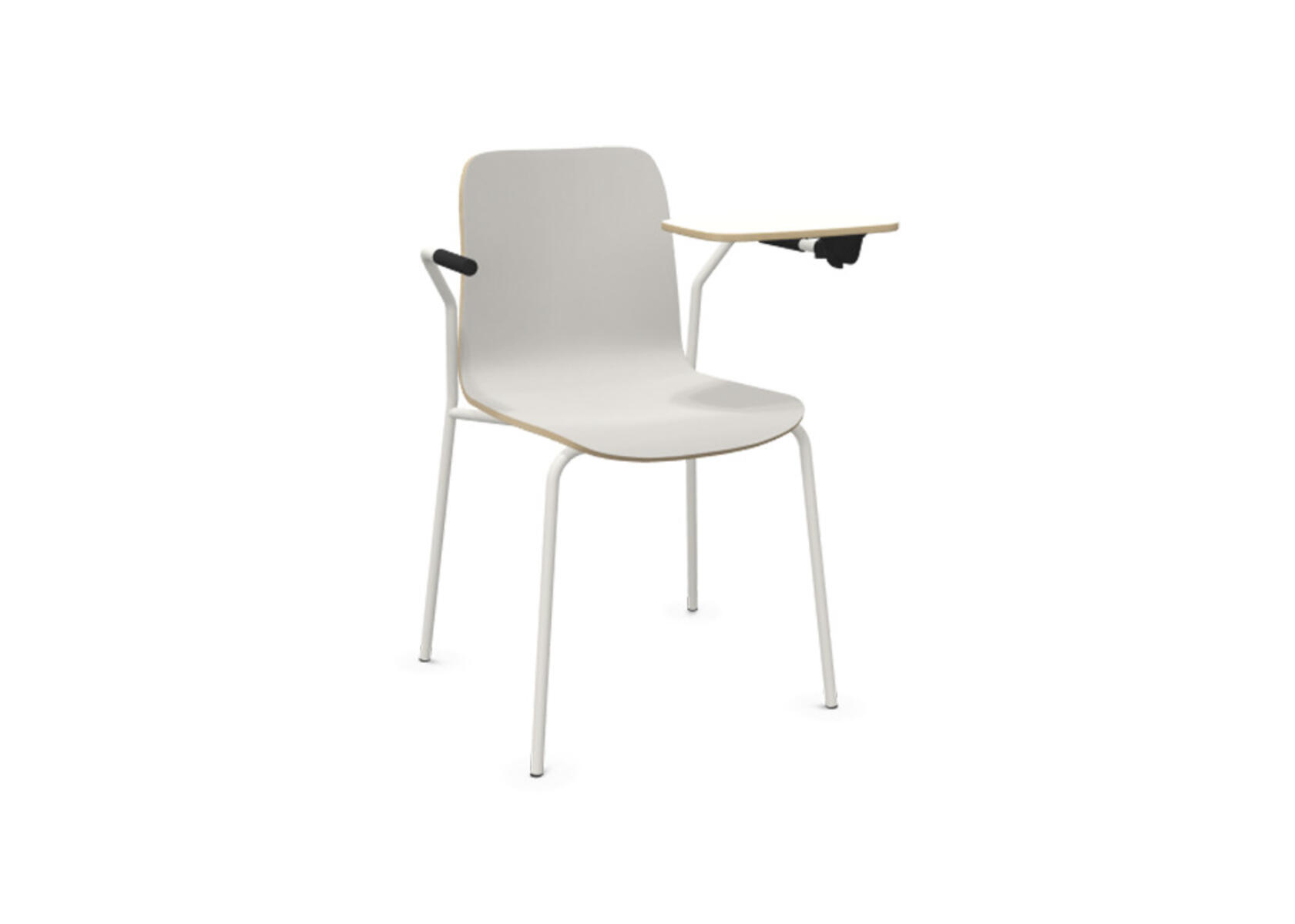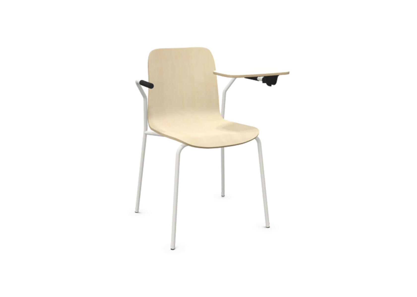 Sittskal i formpressad plywood belagd med högtryckslaminat. Stabilt pulverlackat stativ av ø 18 mm rör med möbeltassar för att skydda golvet. Skrivskiva i plywood belagd med laminat, tjocklek skrivskiva 10,5 mm. För ännu större flexibilitet finns kopplingsbeslag samt radkopplingsbeslag (säljs separat) som gör det enkelt att skapa rader eller gruppsittningar. Maxvikt 110 kg. Stolen är ej stapelbar.