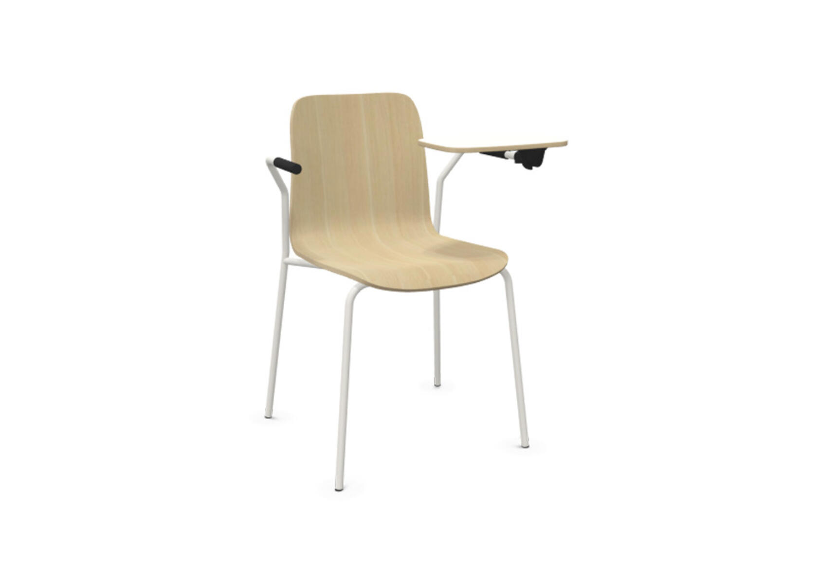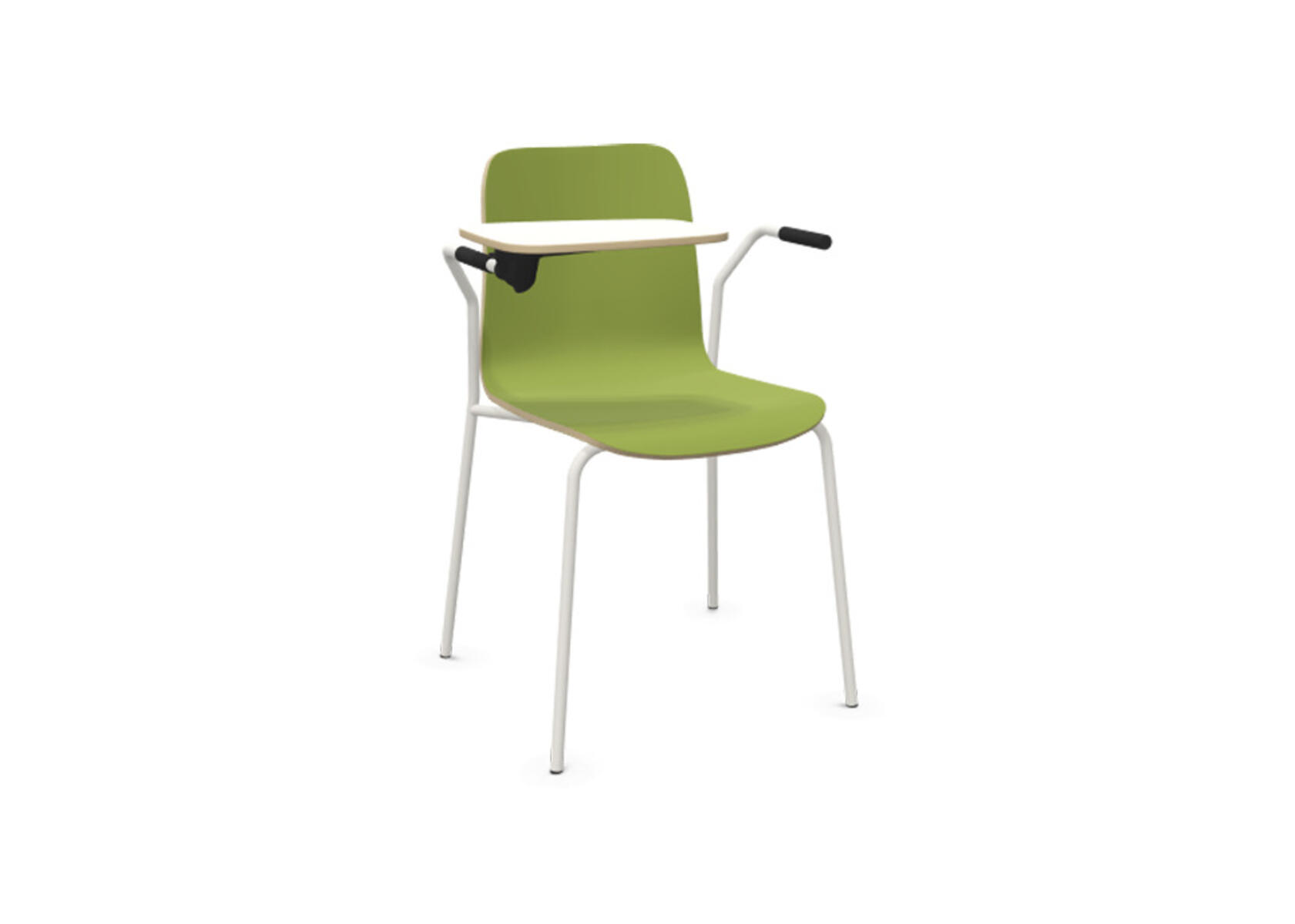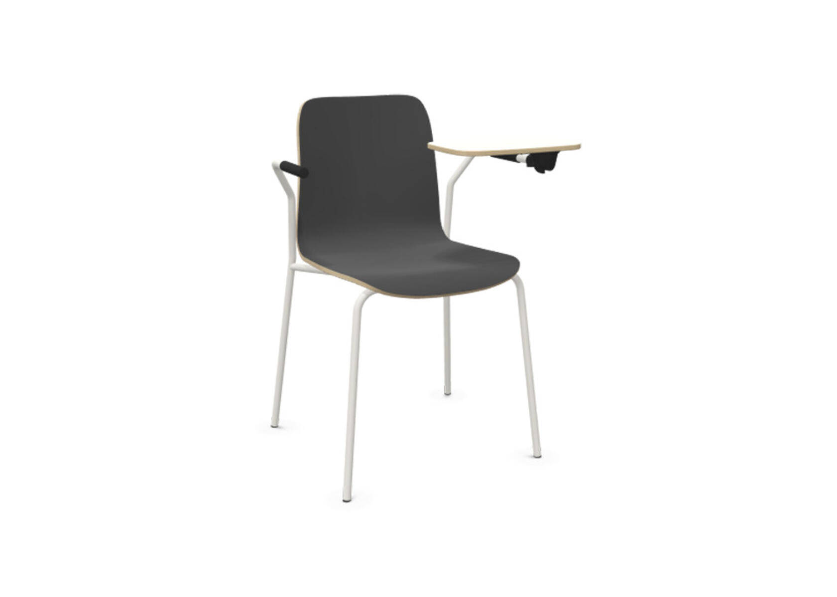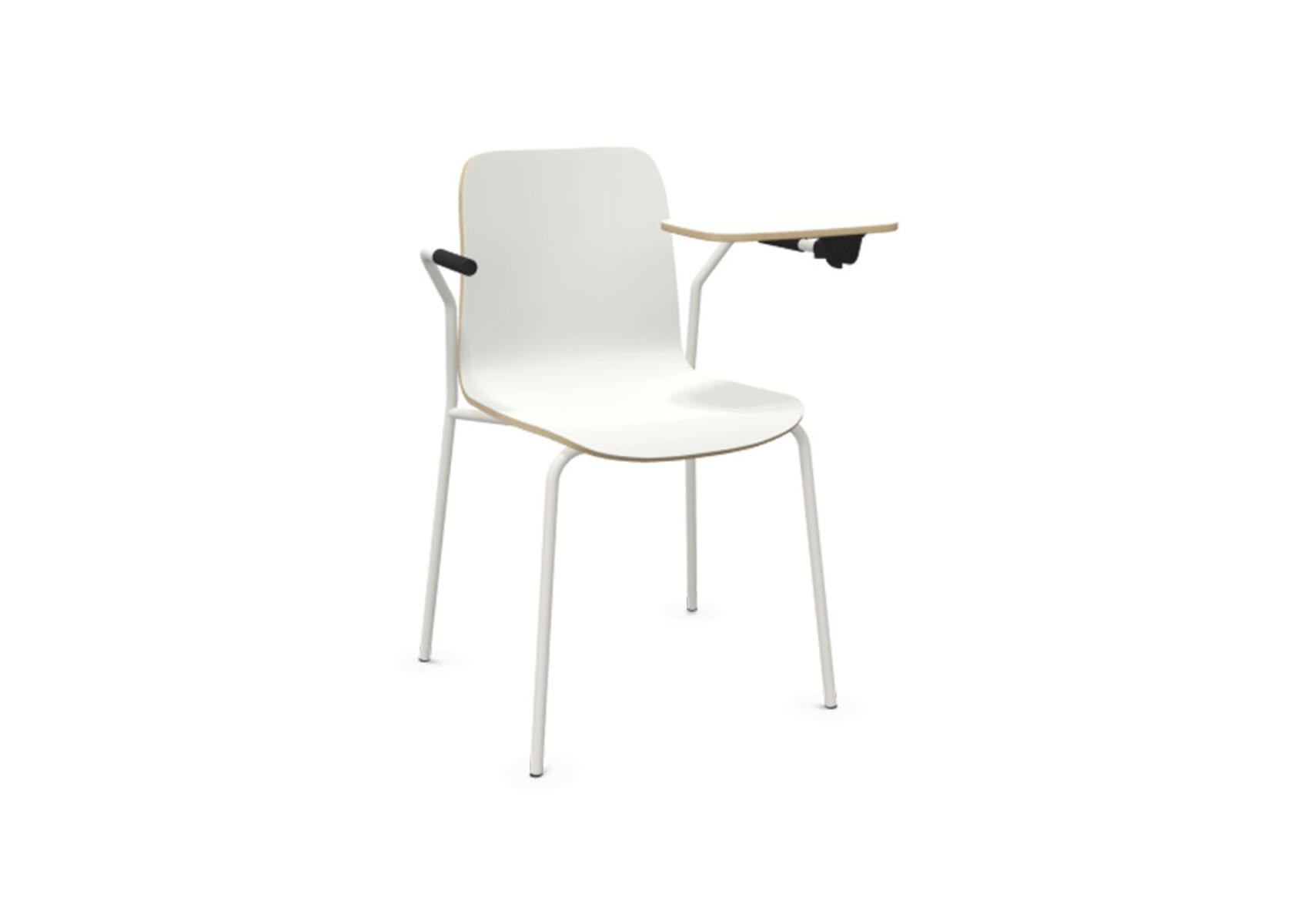 Sittskal i formpressad plywood belagd med högtryckslaminat. Stabilt pulverlackat stativ av ø 18 mm rör med möbeltassar för att skydda golvet. Skrivskiva i plywood belagd med laminat, tjocklek skrivskiva 10,5 mm. För ännu större flexibilitet finns kopplingsbeslag samt radkopplingsbeslag (säljs separat) som gör det enkelt att skapa rader eller gruppsittningar. Maxvikt 110 kg. Stolen är ej stapelbar.