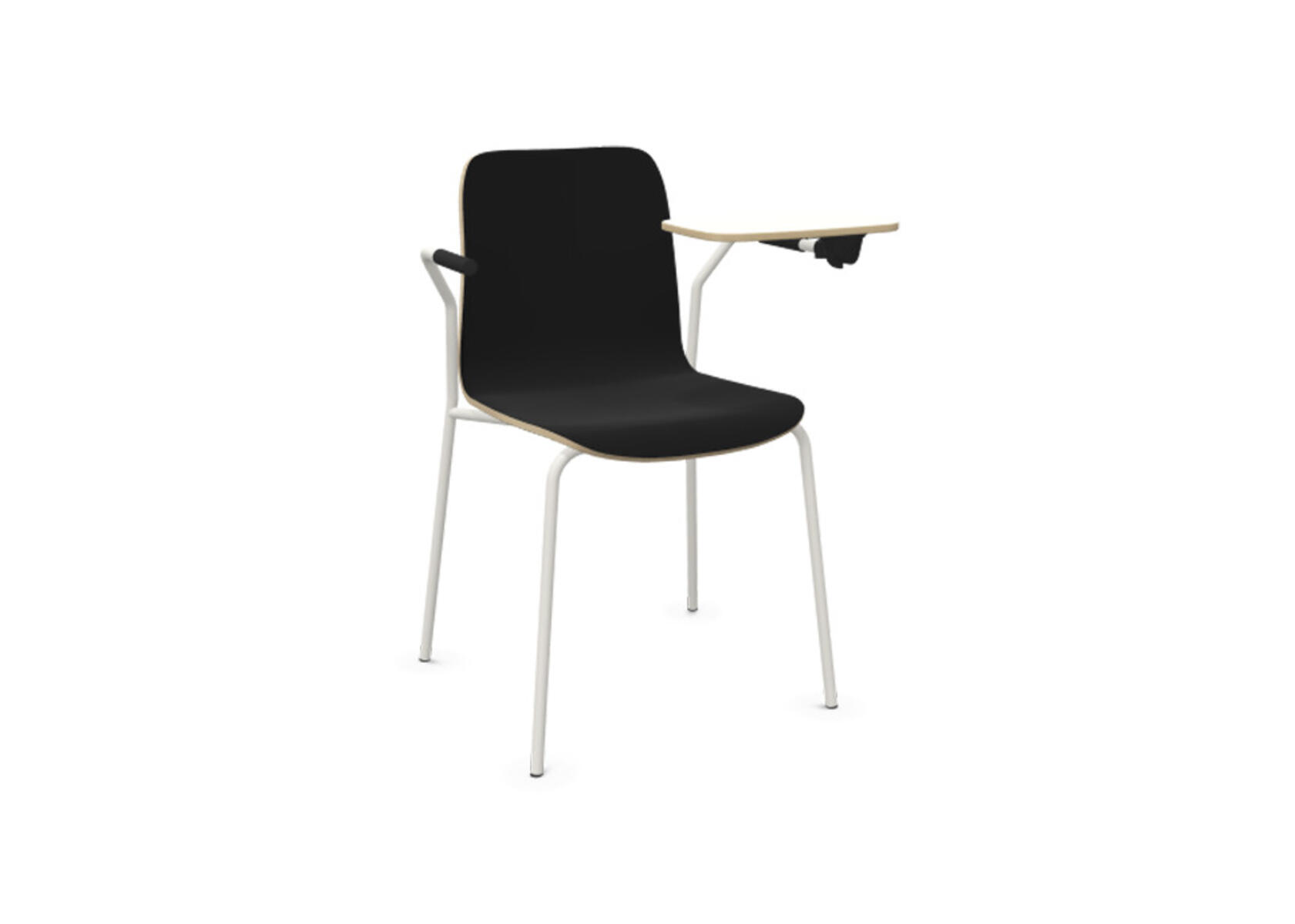 Sittskal i formpressad plywood klädd med kallskum, vilket ger både komfort och stöd. Stabilt pulverlackat stativ av ø 18 mm rör med möbeltassar för att skydda golvet. Skrivskiva i plywood belagd med laminat, tjocklek skrivskiva 10,5 mm. För ännu större flexibilitet finns kopplingsbeslag samt radkopplingsbeslag (säljs separat) som gör det enkelt att skapa rader eller gruppsittningar. Maxvikt 110 kg. Stolen är ej stapelbar.