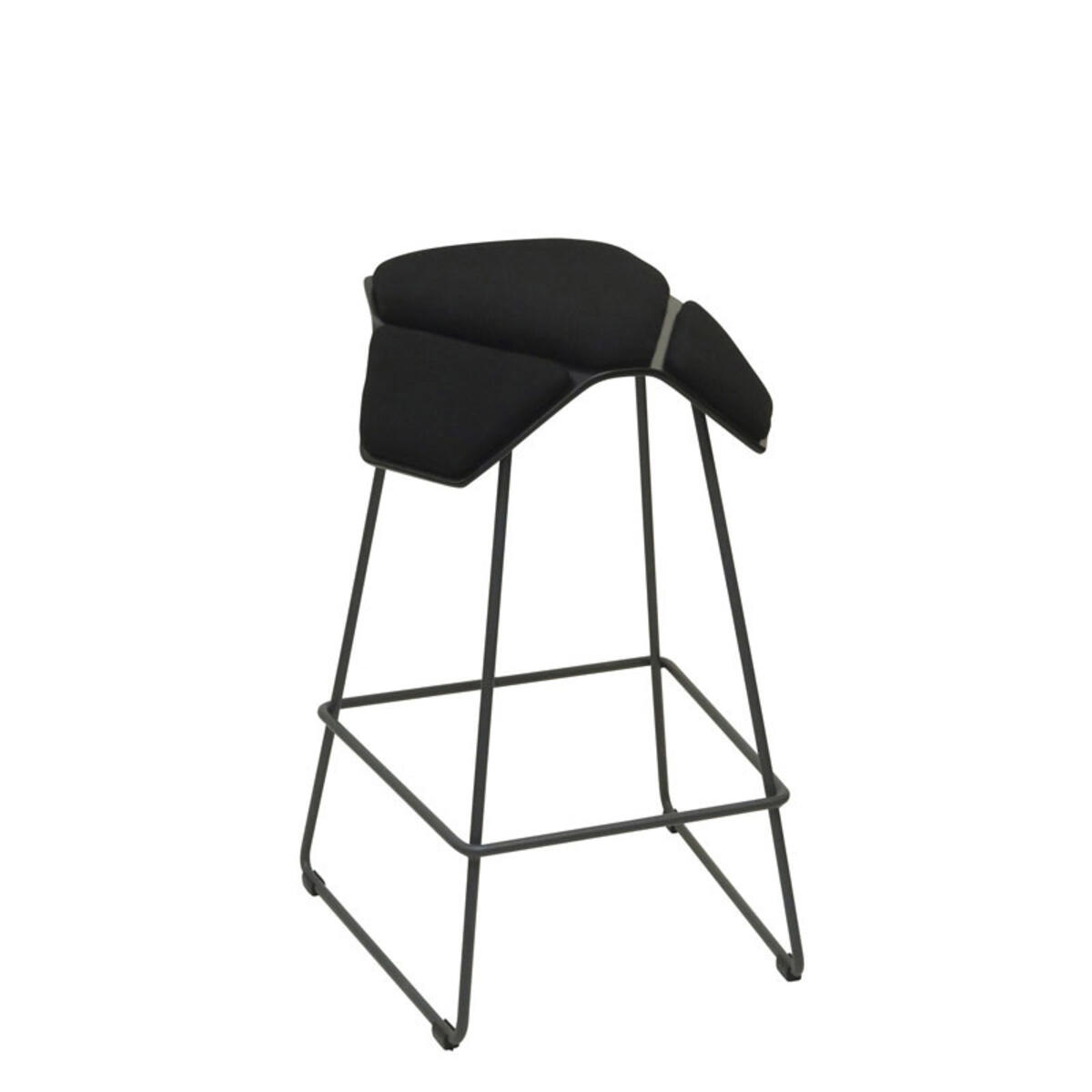 Finsk design av Jonas Hakaniemi. Formpressad sits i björk helklädd med 4 cm hög sittdyna klädd i tyg Fame, -96 (60999), -95 (60003) och -11 (63016). Tyg 95 % ull och 5 % polyamid. Svartlackerat stativ med möbeltassar.