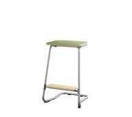 Stapelbar. Ljuddämpande tassar. Upphängningsbar på bord. Reglerbar fotbräda i 3 fasta lägen. Sits i högtryckslaminat. Silverlackerat stativ, RAL 9006. Testad och godkänd enligt standard EN 1729-2.
