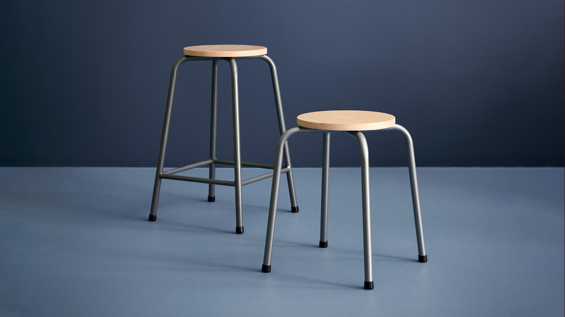 Stapelbara pallen Nico har smäcker design och en stabil konstruktion. Perfekt för ett makerspace, slöjdsalen eller ett gemensamhetsutrymme. Den cirkelrunda sitsen är i klassiskt björkkryssfanér och stativet är i stål. Pallarna finns med eller utan fotstöd och i två olika höjder.