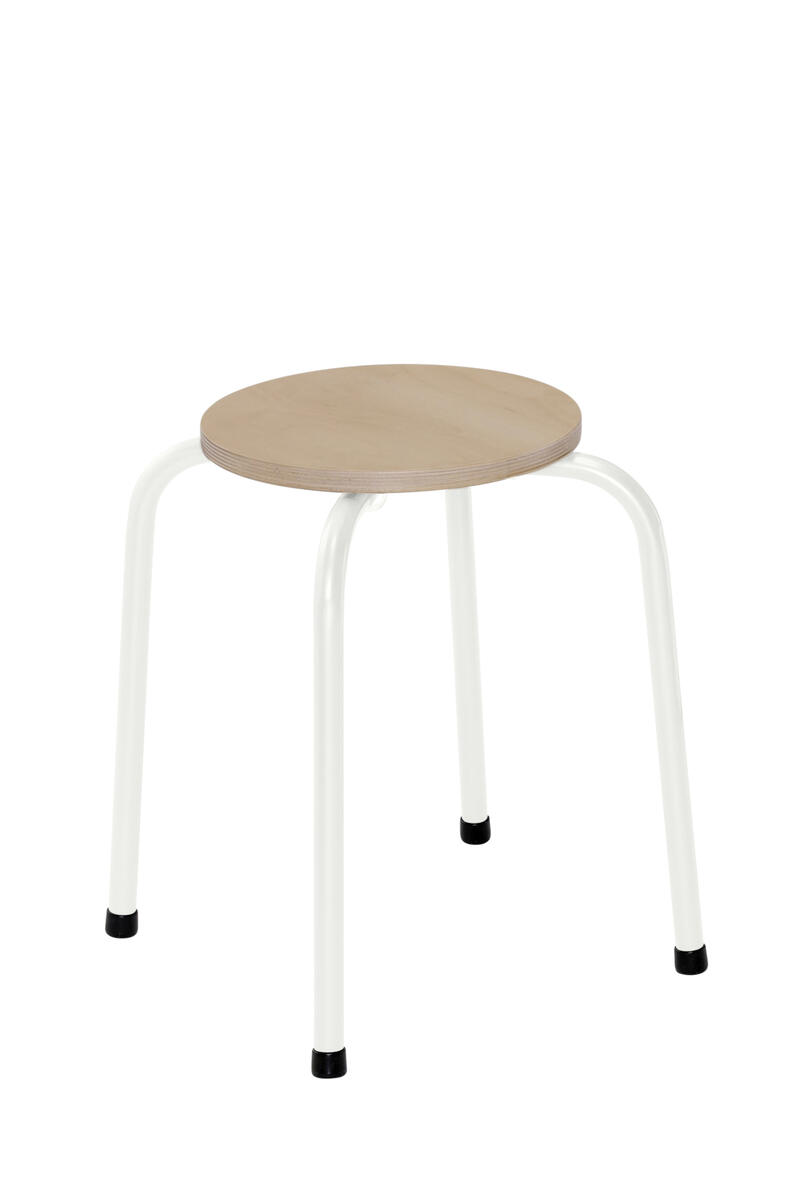 Bordsskiva belagd med laminat. Med en hörnradie på 40 mm får bordet en modern och stilren design. Benen är tillverkade av klarlackad massiv björk och monterade i en robust vit metallhylsa. Denna konstruktion garanterar både stabilitet och hållbarhet. Benen är något snett vinklade ut mot bordsskivans hörn. Monteringen är enkel och smidig – du behöver bara fästa metallhylsorna i de förberedda fästpunkterna i bordsskivan.