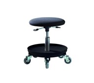 Praktisk åkstol klädd i konstläder. Plastram med kallskum. Sitthöjd 38–51 cm regleras med gasfjäder. ø sits: 33 cm. Plastkryss. Köp till ryggstöd, artnr. 80764.