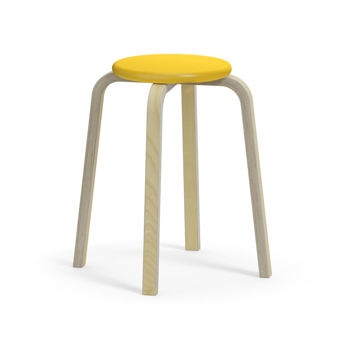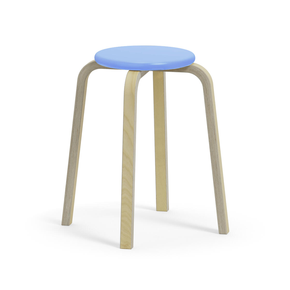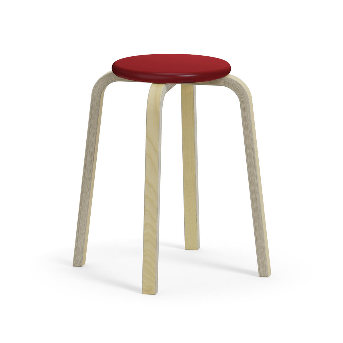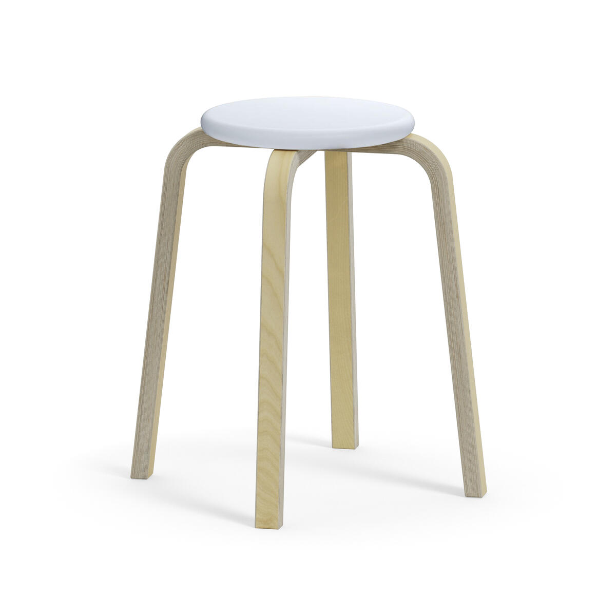Stapelbar pall i klarlackad björkplywood. Björksits är med klarlackad yta, övriga färger med högtryckslaminat. Fotstöd och ryggstöd beställs separat. Efter montering av ryggstöd är pallen ej stapelbar.