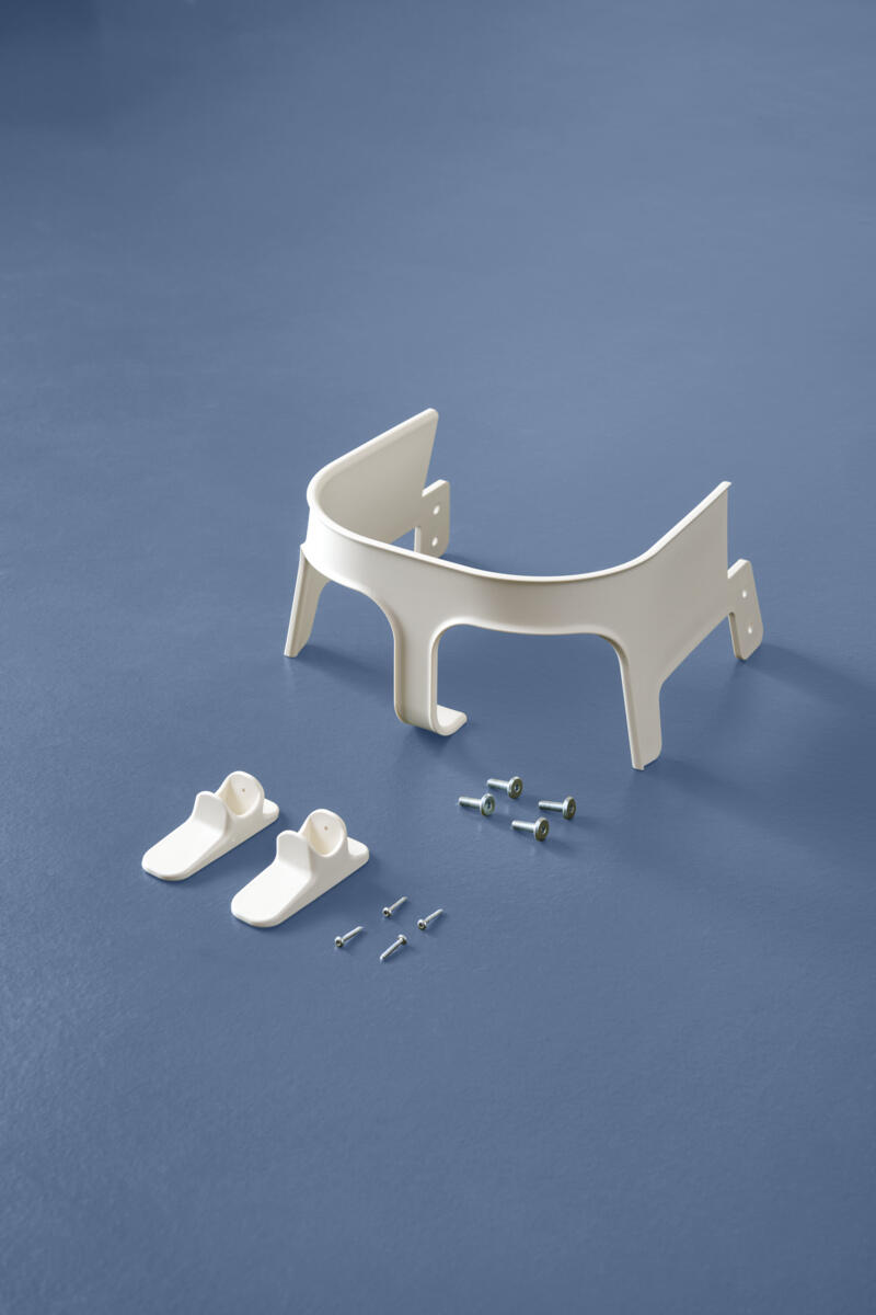 Monteras och demonteras enkelt utan verktyg. Tillverkad i polypropen. Montering av bygeln kräver att sitsen på stol Nomi är i högsta läge och det är av stor vikt att man säkerställer att klackarna på bygeln aktiveras i sitt lås på stolen. Bygeln uppfyller EN 14988-1:A1:2012.