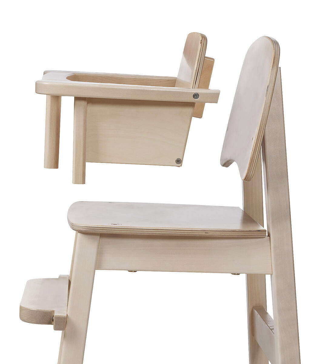 Denna bygel passar vår växastol Kiddo. Den är steglöst ställbar så att barnet kan sitta säkert och bekvämt vid matbordet. Med bygeln följer även en sele. Den kan med enkelhet monteras bort då stolen skall användas till äldre barn. Bygeln rengörs enkelt genom avtorkning med en fuktig trasa.