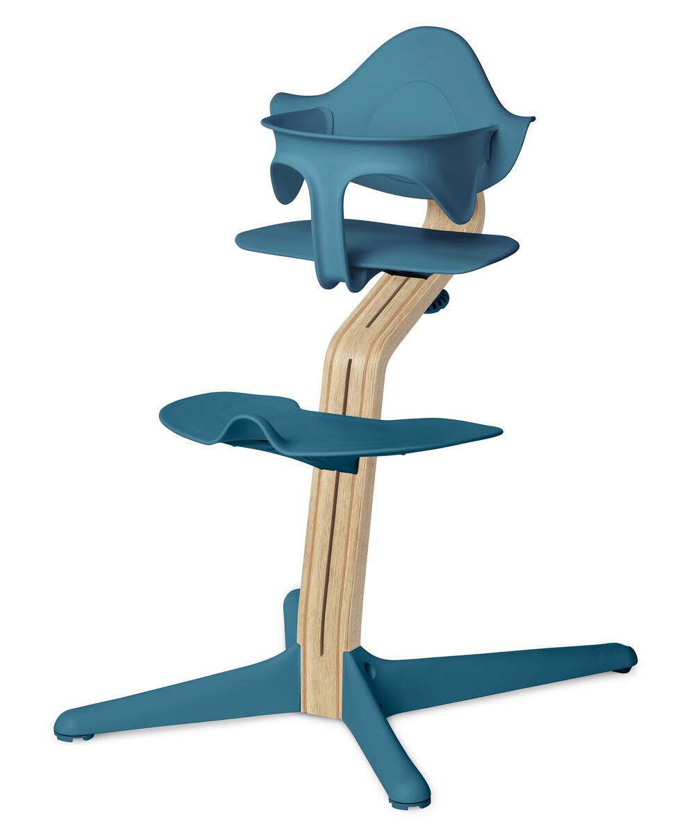 En barnstol från Tripp Trapp-stolens skapare, Peter Opsvik. Både stolsitsen och fotstödet kan justeras i höjdled, utan verktyg, vilket gör att stolen kan följa med ända upp i tonåren. Fotknoppen på fotstödet stimulerar och ger oroliga fötter en plats att vila på. Sitsens och fotstödets form förhindrar att barnet glider framåt, och hjulen baktill ger maximal säkerhet mot att tippa bakåt. Stolen hängs lätt på bordskanten. Skiktlimmad pelare med kärna av bok belagd med ekfaner. Sits, rygg, fotstöd och ben i polypropen. Producerad i hållbara och återvinningsbara material. Sitthöjd 52-58 cm. Ryggens storlek B36,5xH22 cm. Stolens mått i basen B52xD59 cm. OBS! Bygel köps separat.
