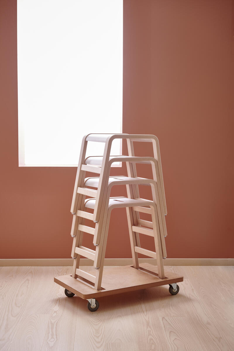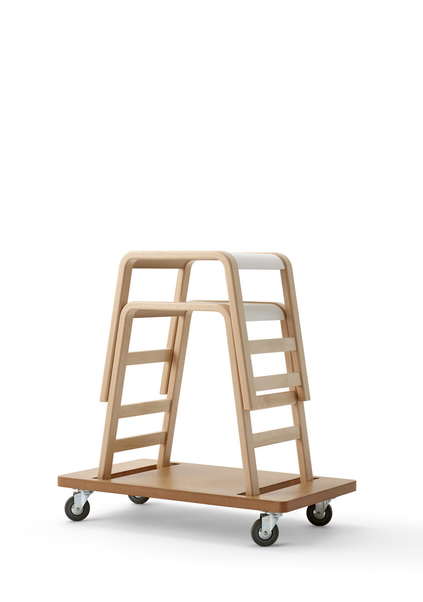 En smidig vagn för förvaring och förflyttning av fällbara Smartstolar (art.nr 138613). Kan användas både för inom- och utomhusbruk. Elförzinkad stål. Rymmer 50 stolar. Fyra hjul varav två är med broms.