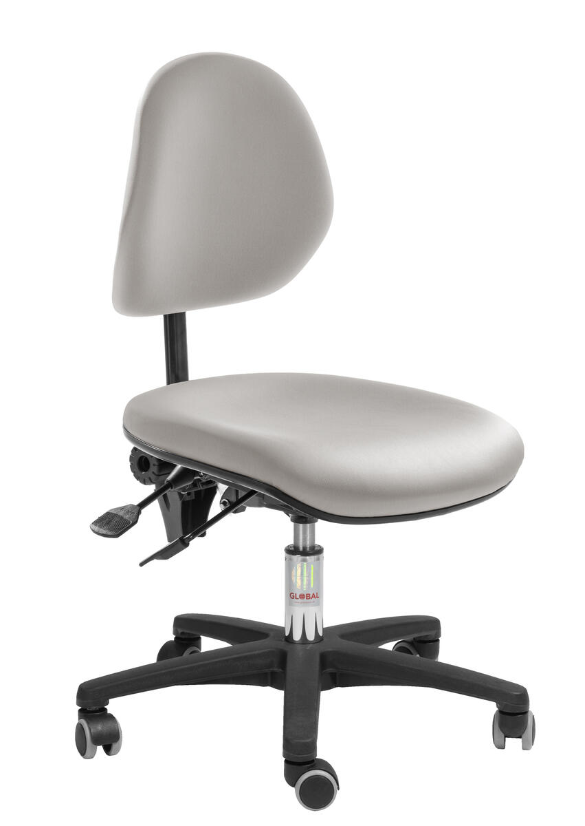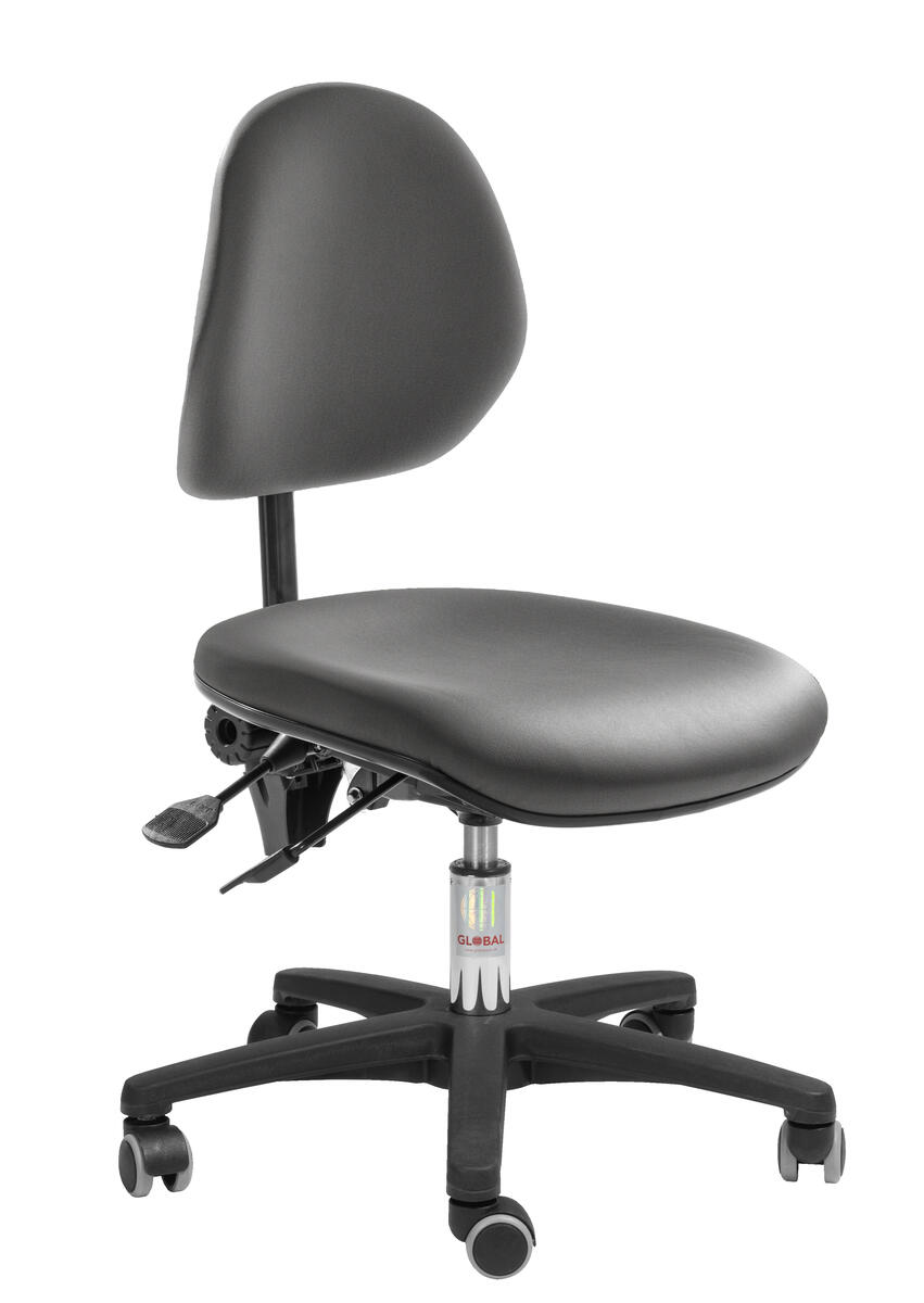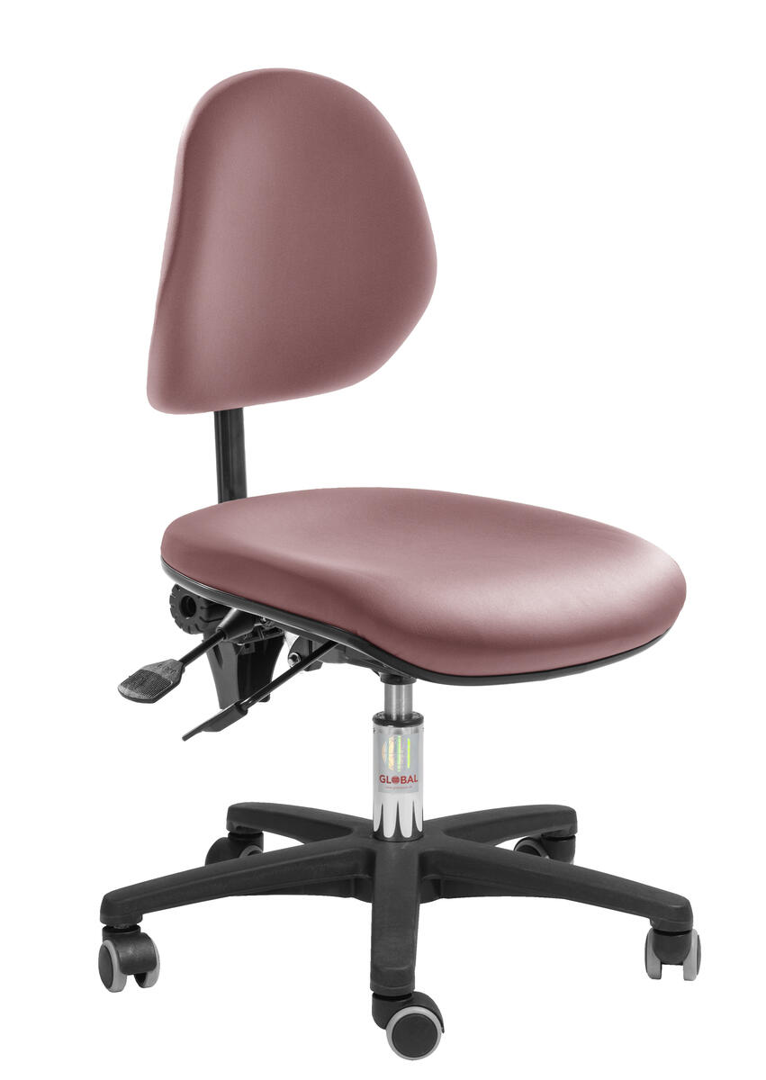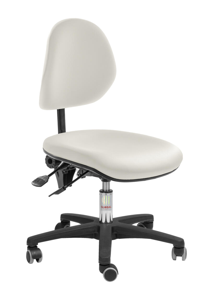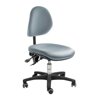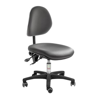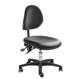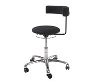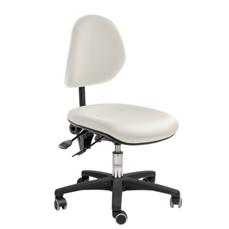 Bekväm och ergonomisk sadelstol, inklusive ryggstöd. Ställbar sitthöjd 35–44 cm. Totaldiameter på sits 32 cm. Totaldiameter på fotkryss 55 cm. Sits i konstläder med stoppning.