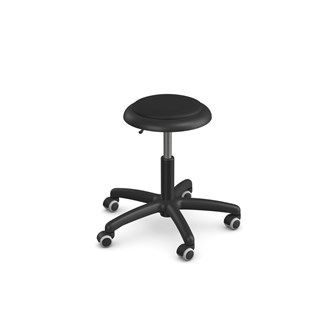 Bekväm och ergonomisk åkstol. Ryggstöd finns som tillval. Ställbar sitthöjd 35–44 cm. Totaldiameter på sits 32 cm. Totaldiameter på fotkryss 55 cm. Sits i konstläder med stoppning.