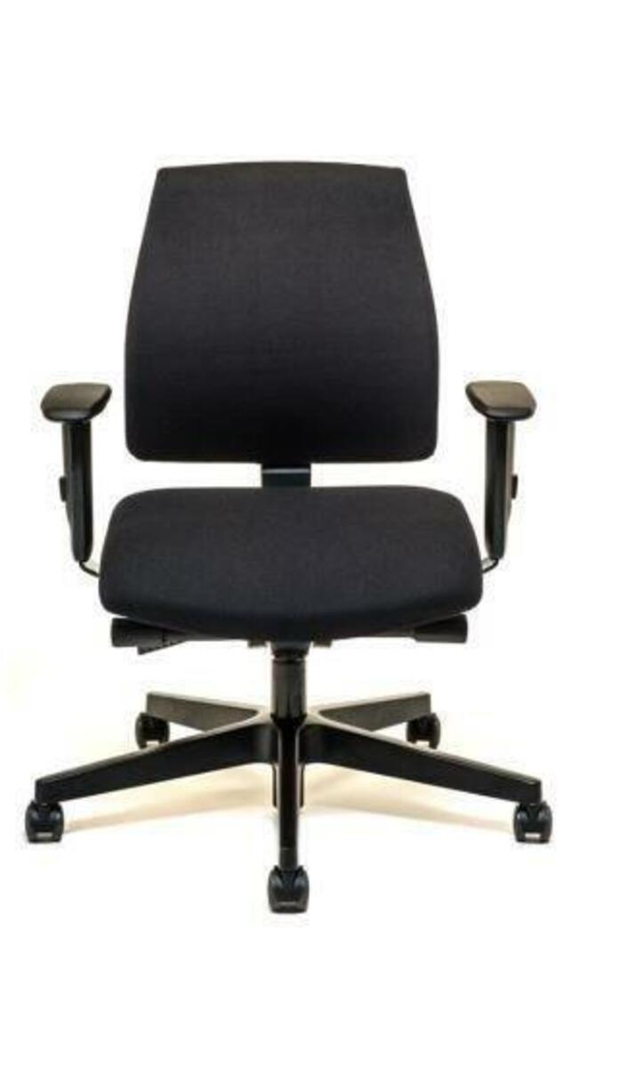 Synkronmekanism, låsbar i 5 olika lägen. Höj- och sänkbar, 44–57 cm. Ryggen ställbar i höjd. Sitsdjup ställbart 44–50 cm. Inkl. höjdjusterbara armstöd.