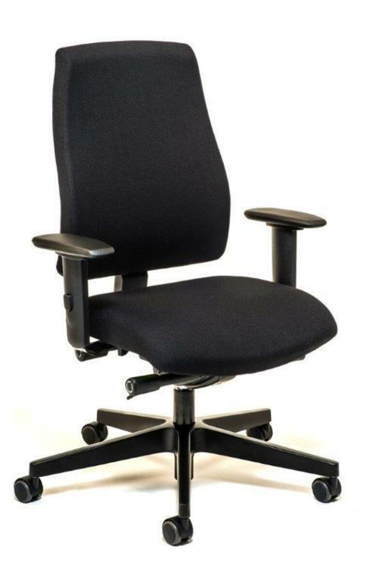 Klädd i tyg Era Forward CSE14. Hög rygg. Svart nylonkryss med hårda hjul för mjuka golv. Hjulen är bromsade när stolen inte används. Justerbara armstöd i höjd, vinkel och fram-/bak. Sittdjupsjustering (40-46 cm). Svankstödsjustering. Tiltfunktion rygg/sits. Synkronmekanism som gör att ryggstöd och sits anpassar sig efter din rörelse för att ge dig fullt stöd för hela kroppen.
