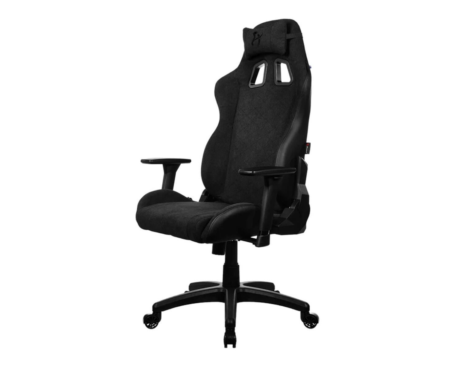 Ergonomisk gamingstol i slitstarkt polyestertyg. Bred sits och rygg samt extra tjock vaddering på sits, ryggstöd och armstöd ger hög komfort. Svart nylonkryss med ekrade dubbelhjul i nylon. Stolen låses i upprätt läge eller kan gungas fritt upp till 12° med justerbart motstånd. Justerbart ryggstöd i 4° låsbara steg. 3D-armstöd - Ställbart i höjd, sidled och djup. Lättviktskonstruktion för enkel förflyttning. Justerbar höjd med gasfjäder som stöder upp till 120 kg.