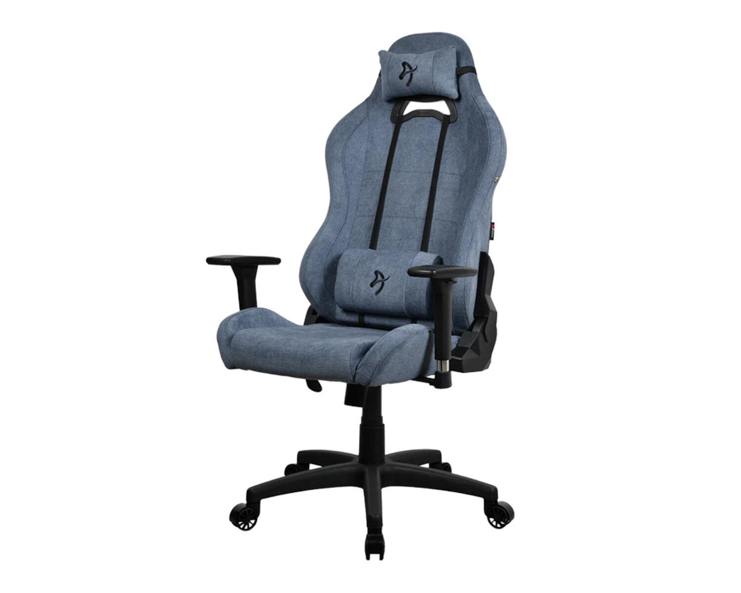 Ergonomisk gamingstol i slitstarkt polyestertyg. Bred sits och rygg samt extra tjock vaddering på sits, ryggstöd och armstöd ger hög komfort. Svart nylonkryss med ekrade dubbelhjul i nylon. Stolen låses i upprätt läge eller kan gungas fritt upp till 12° med justerbart motstånd. Justerbart ryggstöd i 4° låsbara steg. 3D-armstöd - Ställbart i höjd, sidled och djup. Lättviktskonstruktion för enkel förflyttning. Justerbar höjd med gasfjäder som stöder upp till 120 kg.