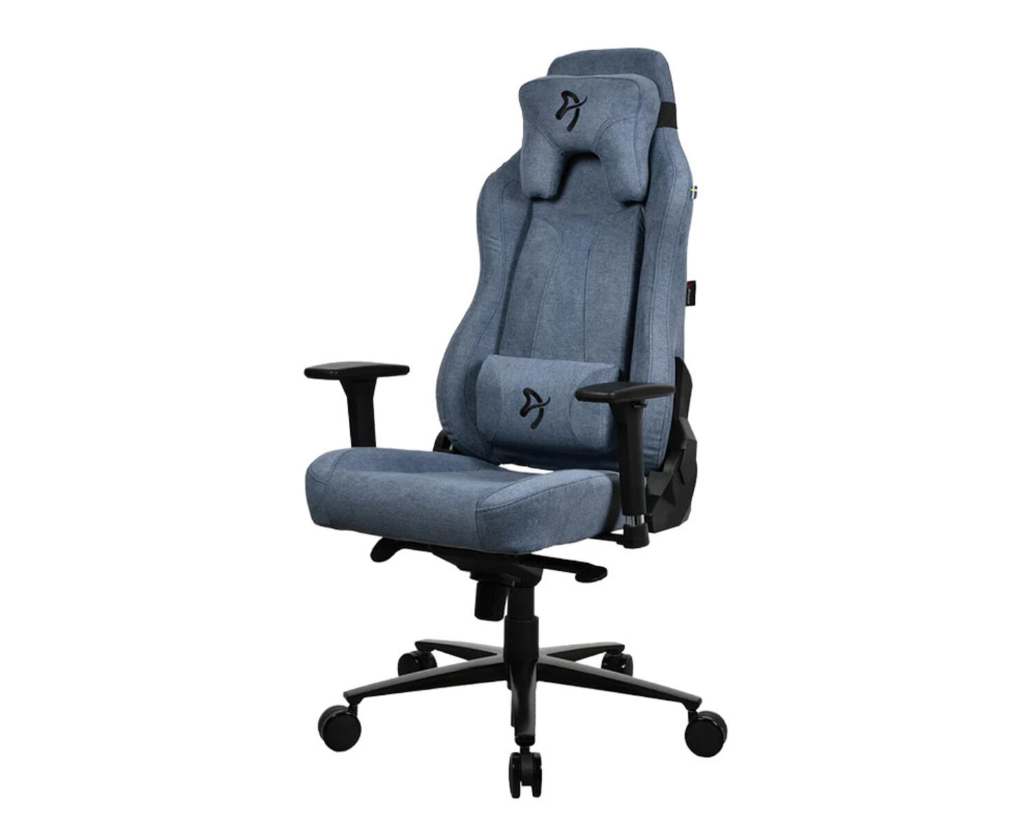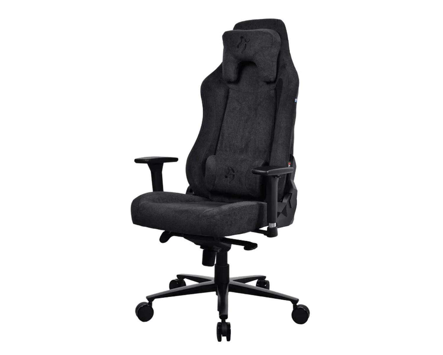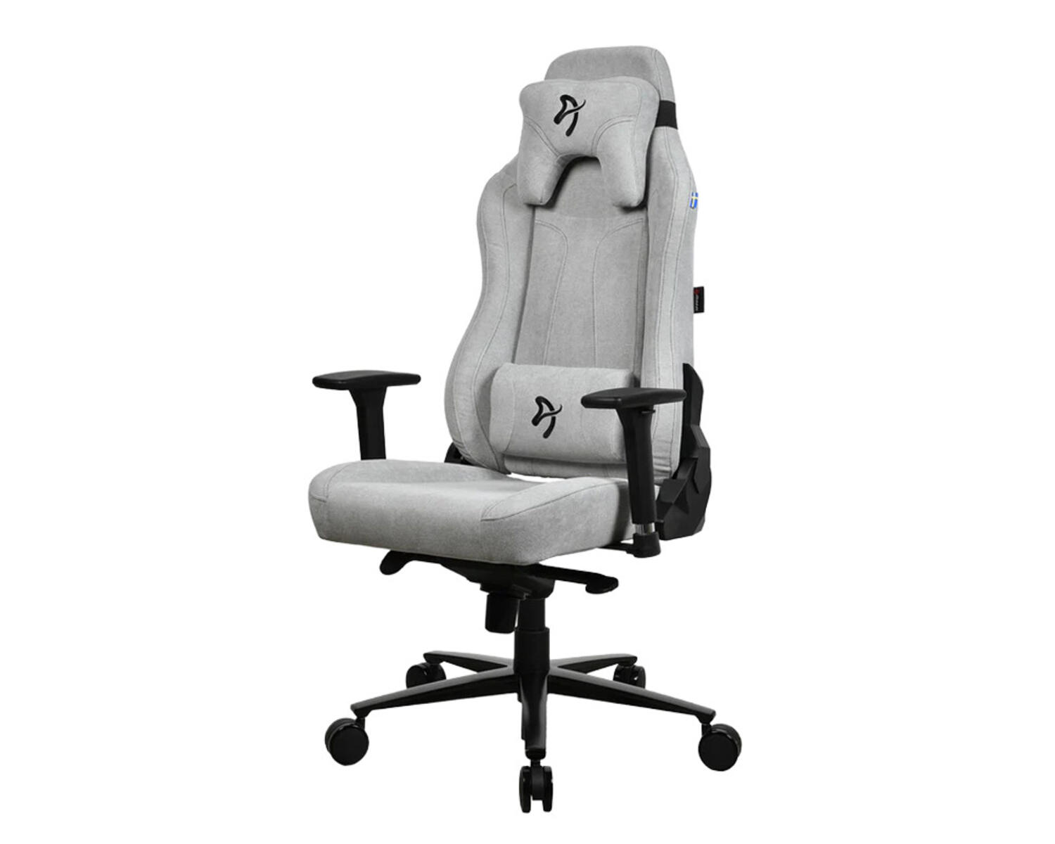 Ergonomisk gamingstol i slitstarkt polyestertyg. Bred sits och rygg samt extra tjock vaddering på sits, ryggstöd och armstöd ger hög komfort. Svart nylonkryss med ekrade dubbelhjul i nylon. Stolen låses i upprätt läge eller kan gungas fritt upp till 12° med justerbart motstånd. Justerbart ryggstöd i 4° låsbara steg. 3D-armstöd - Ställbart i höjd, sidled och djup. Lättviktskonstruktion för enkel förflyttning. Justerbar höjd med gasfjäder som stöder upp till 120 kg.