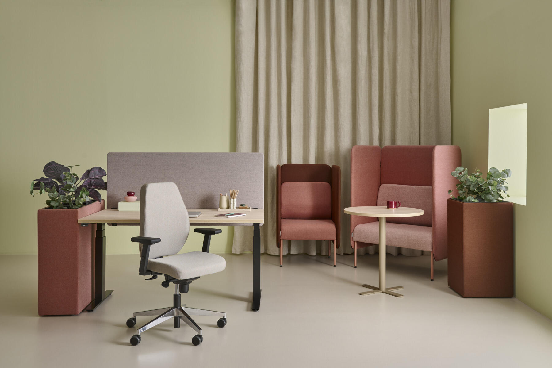 En stilren och ergonomisk kontorsstol med helklädd låg rygg och synkronmekanism, utformad för att ge stöd vid aktivt sittande under hela arbetsdagen. Klädd i ulltyg Remix 3. Den synkroniserade lutningen av ryggstöd och sits möjliggör aktiv och bekväm sittställning. Ryggstödslutningsvinkel 20° synkroniserad med sitslutningsvinkel 11°. Ryggstödet är låsbart i 5 olika lägen för individuell anpassning och du kan enkelt justera ryggstödets motstånd med ett vred. Ryggstödet är höjdjusterbart inom intervallet 70 mm med 13 låslägen. Stolen har även Anti-Shock funktion vilket förhindrar ryggstödet slår tillbaka när lutningen låses upp. Välj mellan kryss i svart polyamid eller polerad alu samt självbromsande hjul för mjuka eller hårda golv. Som tillval finns även ländryggstöd (Shukra-mekanism), manuellt justerbart i djupled (20mm) med hjälp av ett vred. Armstöd 1D, 2D, 3D alternativt 4D säljs separat.