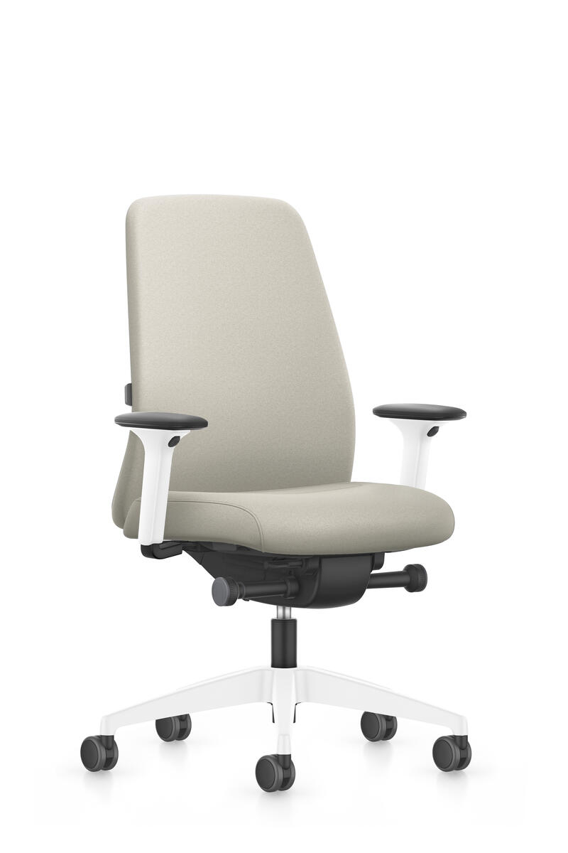 Klädd i tyg Era Futurist CSE01. Hög rygg. Vitt nylonkryss med hårda hjul för mjuka golv. Hjulen är bromsade när stolen inte används. Justerbara armstöd i höjd, vinkel och fram-/bak. Sittdjupsjustering (40-46 cm). Svankstödsjustering. Tiltfunktion rygg/sits. Synkronmekanism som gör att ryggstöd och sits anpassar sig efter din rörelse för att ge dig fullt stöd för hela kroppen.