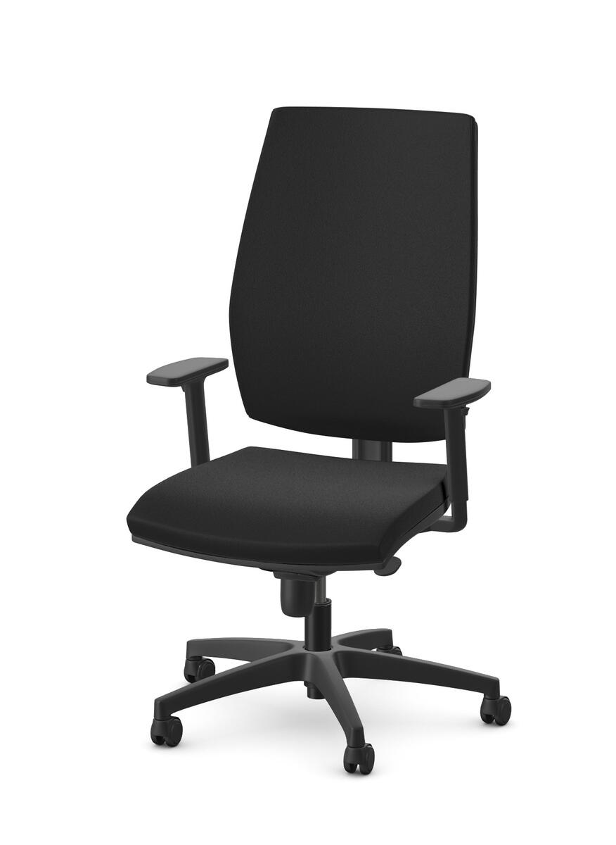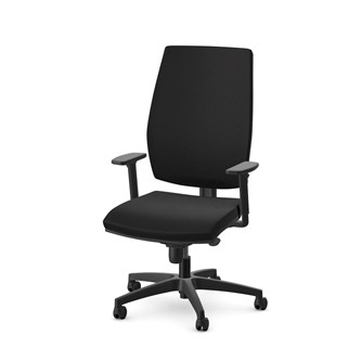 Synkronmekanism, låsbar i 5 olika lägen. Höj- och sänkbar, 44–57 cm. Ryggen ställbar i höjd. Sitsdjup ställbart 44–50 cm. Inkl. höjdjusterbara armstöd.