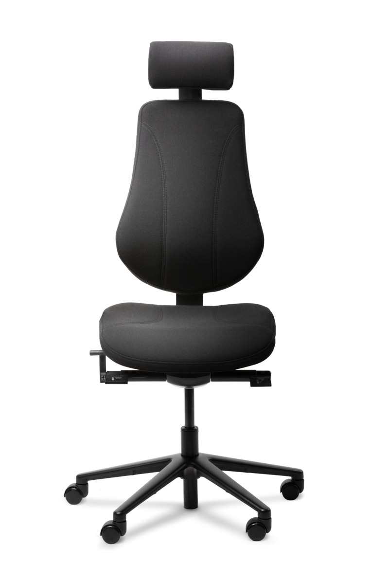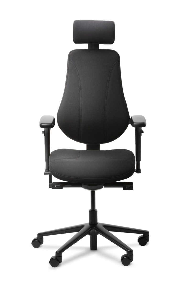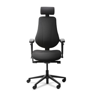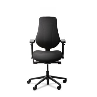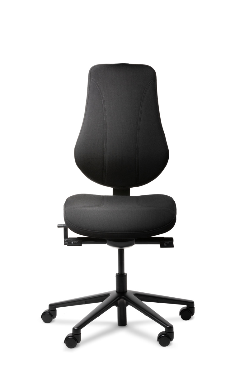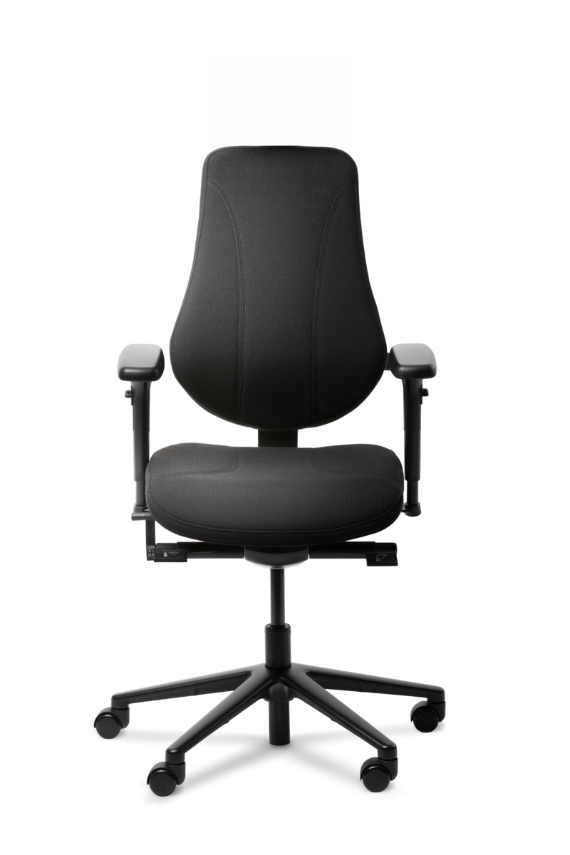 Synkronmekanism, låsbar i 5 olika lägen. Höj- och sänkbar, 44–57 cm. Ryggen ställbar i höjd. Sitsdjup ställbart 44–50 cm. Inkl. höjdjusterbara armstöd.