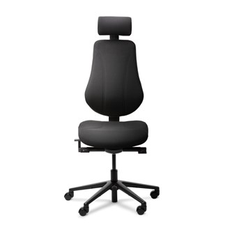 Surf är en stol som kombinerar smidighet och enkelhet utan att dra ner på det ergonomiska tänkandet och komforten. Surf ger maximalt stöd av svank, ländrygg och bröstrygg samtidigt som möjligheten finns att luta sig tillbaka och öppna upp höftleden. Synkrongungan styrs genom kroppens naturliga rörelser både i bakåt- och framåtlutande arbetsställning vid skrivbordet. Nackstödet är ställbart i höjd, djupled och vinkel. Armstöden är höj- och sänkbara, vinklingsbara samt justerbara i sid- och djupled. Ryggen är justerbar i höjd vilket gör att svanken kan anpassas. Sitsen är justerbar i djupled. Välj mellan standardhjul och belastningsbromsande hjul. Armstöd, nackstöd och svankstödspump är tillval. Klädd i tyg Select svart 60999, 85 % New Zealand-ull, 15 % polyamid.