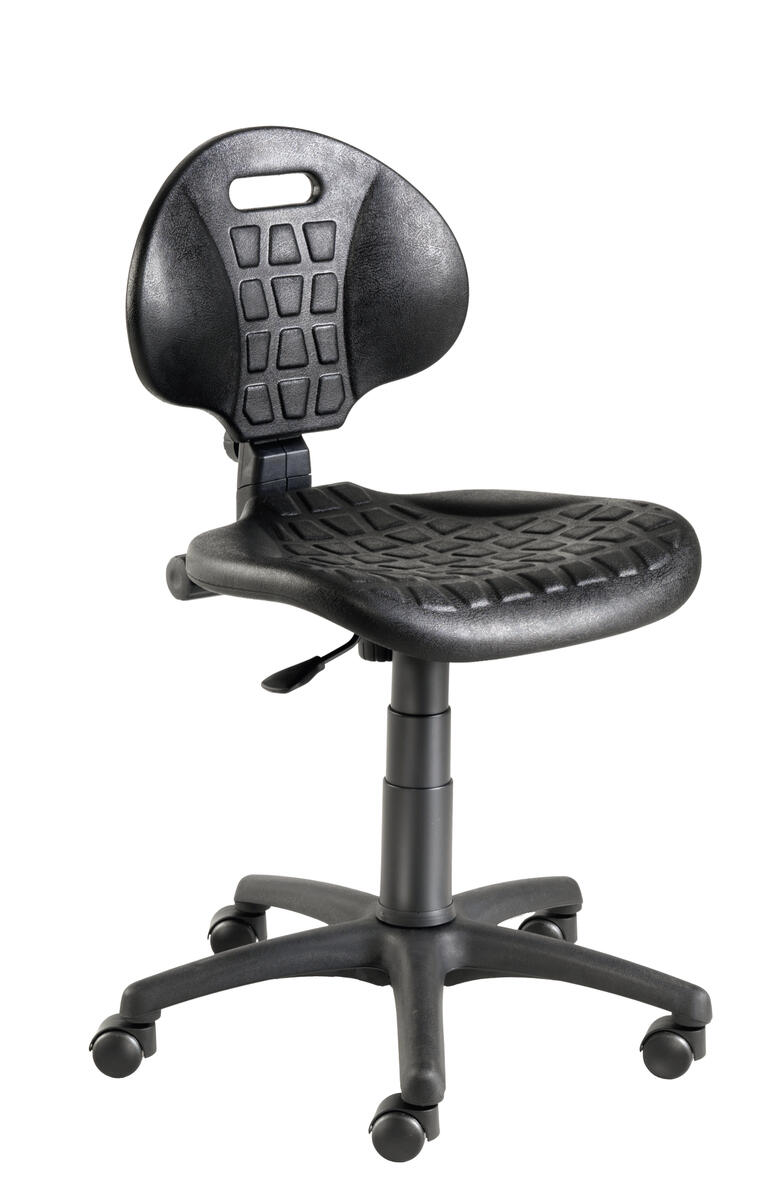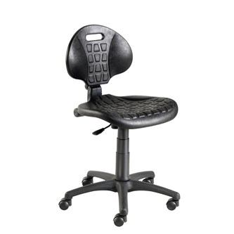 Rygg och sits i slitstarkt integralskum. Ryggen är justerbar i djupled och höjdled. Justerbar svikt i ryggen. Justerbar sitthöjd med gaspatron 40–50 cm. Sitsmått 46x42 cm. Ryggmått 31x41 cm.