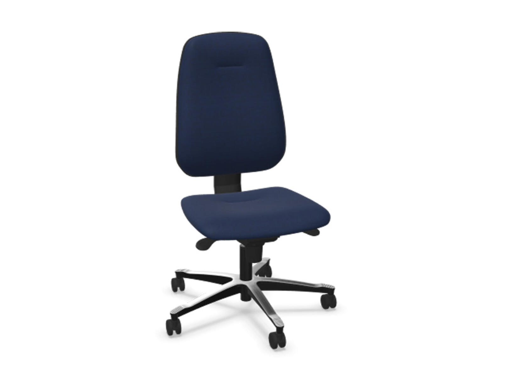 Ergonomisk kontorsstol med halvklädd hög rygg och synkronmekanism, utformad för att ge stöd vid aktivt sittande under hela arbetsdagen. Ryggstödslutningsvinkel 20° synkroniserad med sitslutningsvinkel 11°. Ryggstödet är låsbart i 5 olika lägen för individuell anpassning och du kan enkelt justera ryggstödets motstånd med ett vred. Ryggstödet är höjdjusterbart inom intervallet 75 mm med 13 låslägen. Stolen har även Anti-Shockfunktion vilket förhindrar att ryggstödet slår tillbaka när lutningen låses upp. Välj mellan kryss i svart polyamid eller polerad alu samt självbromsande hjul för mjuka eller hårda golv. Armstöd 2D, 3D alternativt 4D säljs separat.
