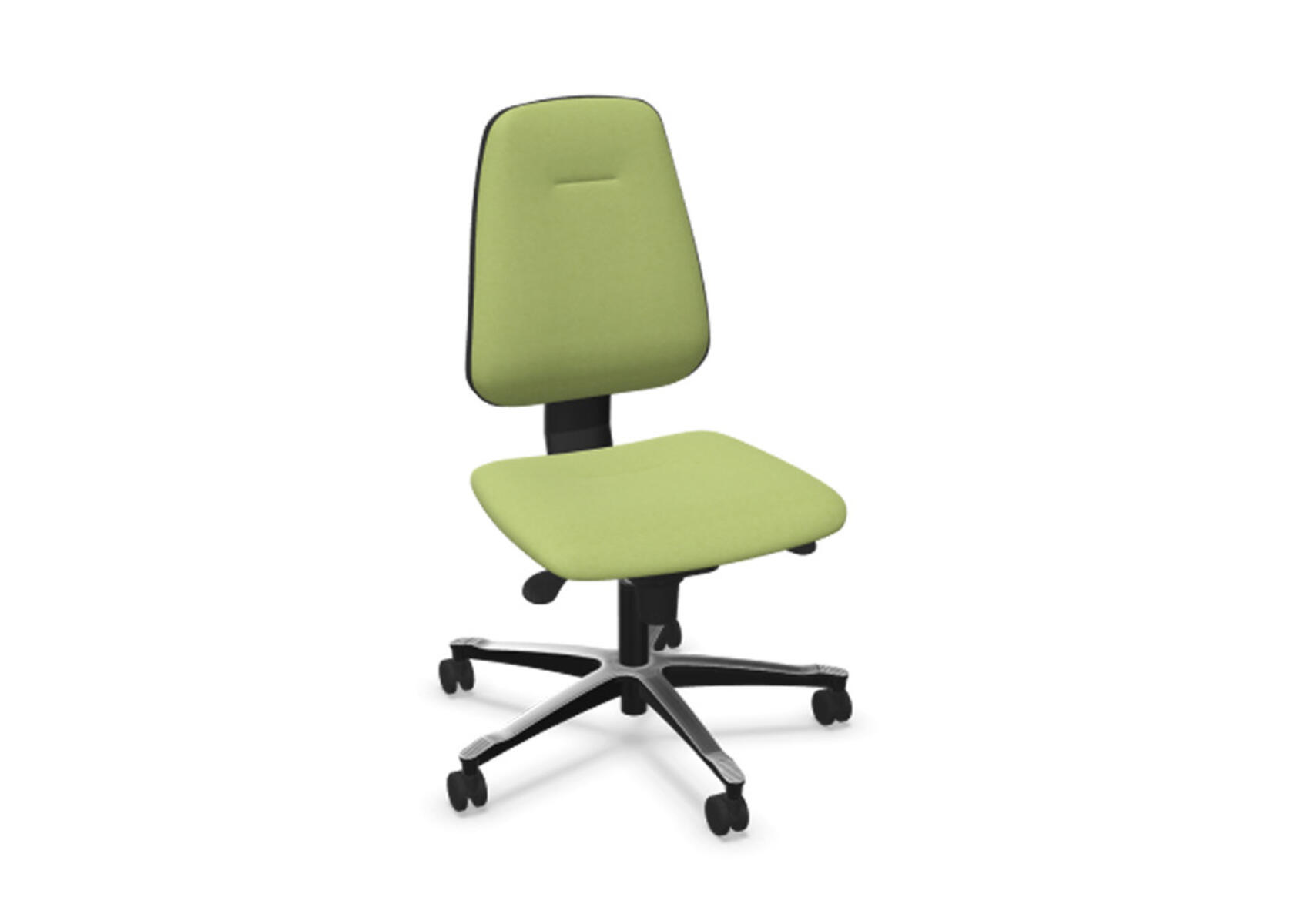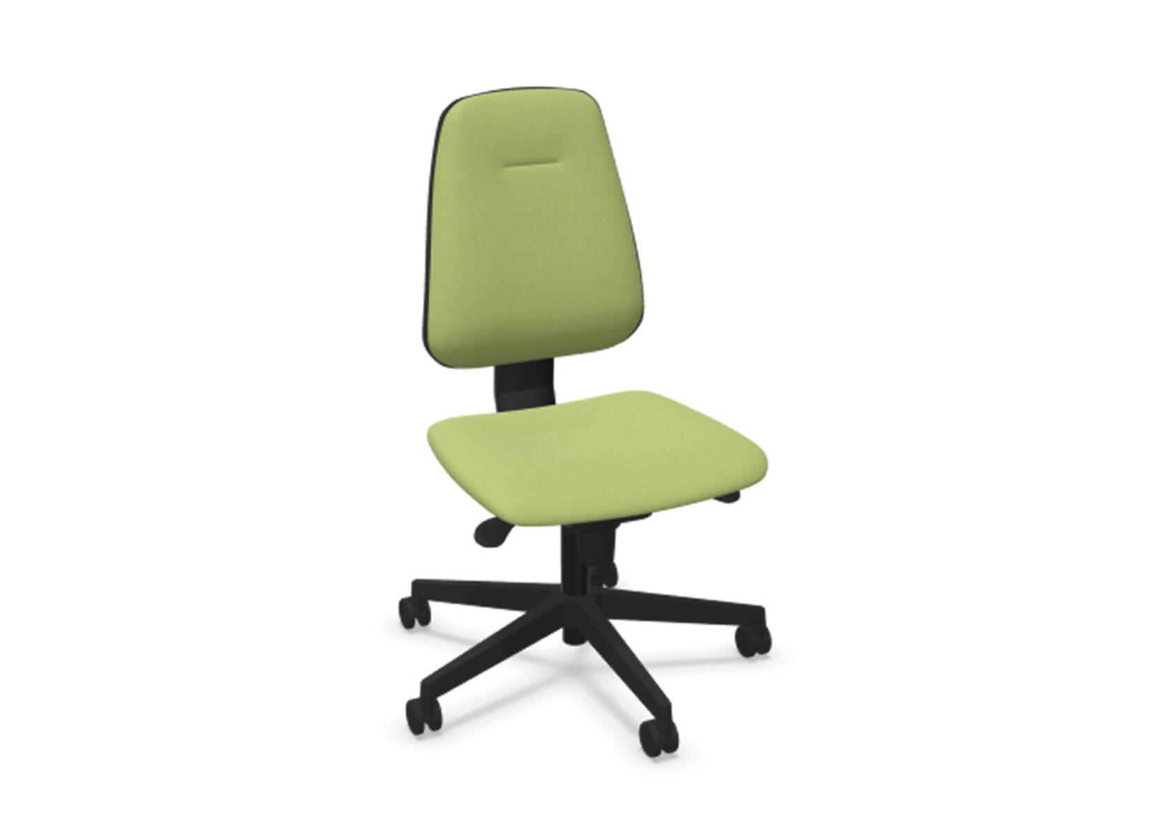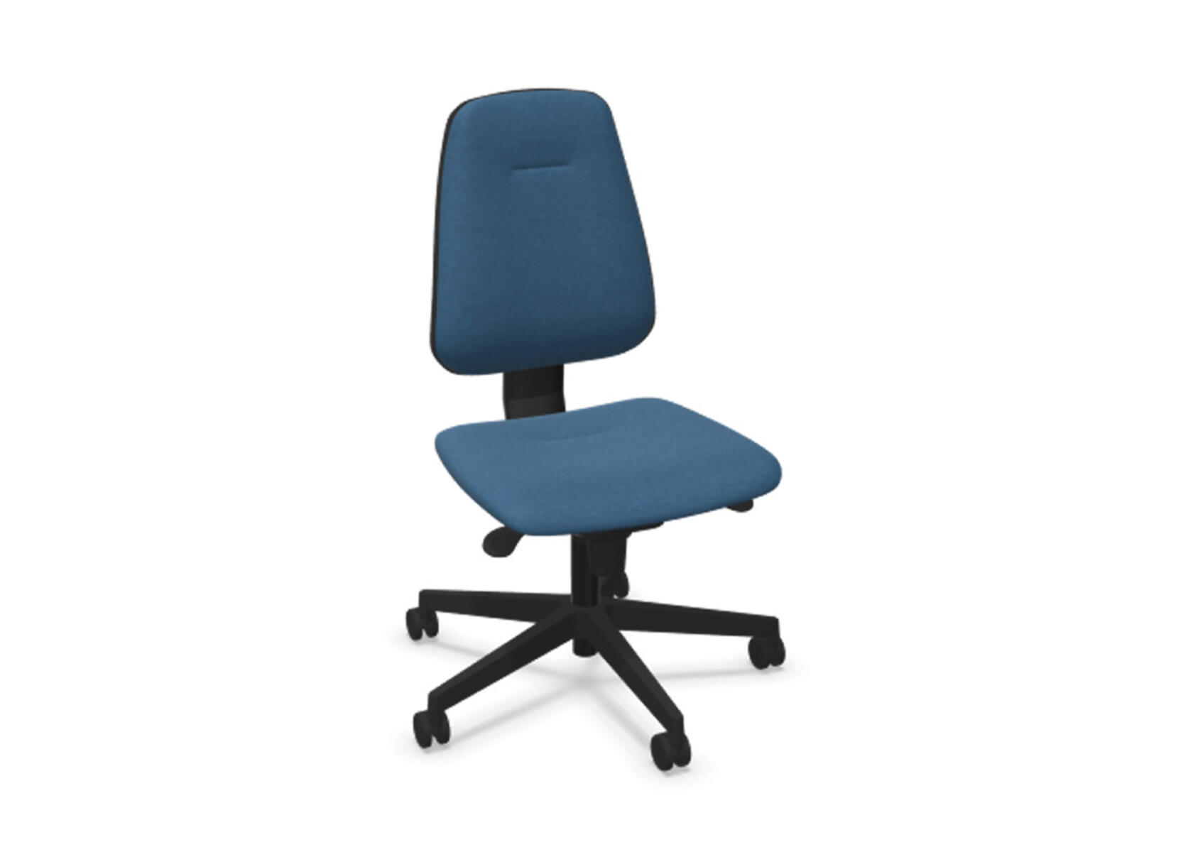Ergonomisk kontorsstol med halvklädd låg rygg och synkronmekanism, utformad för att ge stöd vid aktivt sittande under hela arbetsdagen. Ryggstödslutningsvinkel 20° synkroniserad med sitslutningsvinkel 11°. Ryggstödet är låsbart i 5 olika lägen för individuell anpassning och du kan enkelt justera ryggstödets motstånd med ett vred. Ryggstödet är höjdjusterbart inom intervallet 75 mm med 13 låslägen. Stolen har även Anti-Shockfunktion vilket förhindrar att ryggstödet slår tillbaka när lutningen låses upp. Välj mellan kryss i svart polyamid eller polerad alu samt självbromsande hjul för mjuka eller hårda golv. Armstöd 2D, 3D alternativt 4D säljs separat.