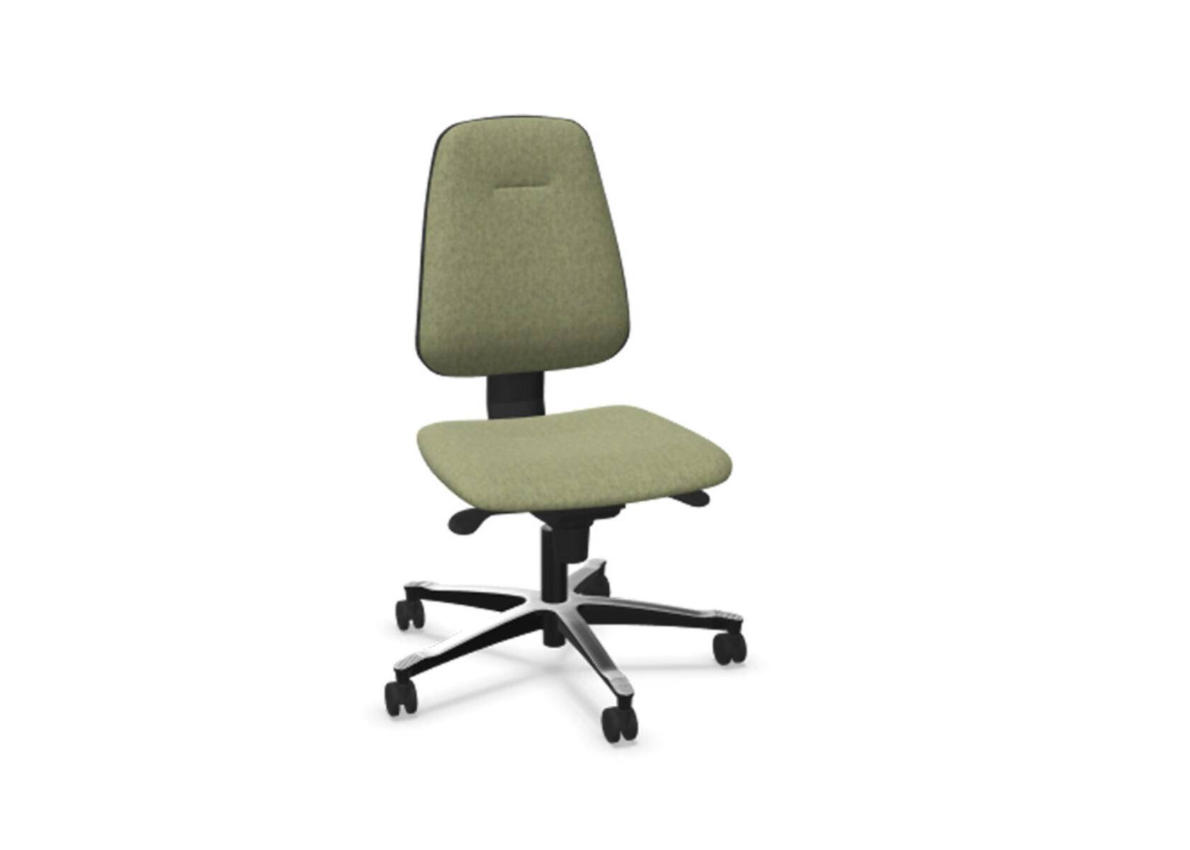 Ergonomisk kontorsstol med halvklädd låg rygg och synkronmekanism, utformad för att ge stöd vid aktivt sittande under hela arbetsdagen. Ryggstödslutningsvinkel 20° synkroniserad med sitslutningsvinkel 11°. Ryggstödet är låsbart i 5 olika lägen för individuell anpassning och du kan enkelt justera ryggstödets motstånd med ett vred. Ryggstödet är höjdjusterbart inom intervallet 75 mm med 13 låslägen. Stolen har även Anti-Shockfunktion vilket förhindrar att ryggstödet slår tillbaka när lutningen låses upp. Välj mellan kryss i svart polyamid eller polerad alu samt självbromsande hjul för mjuka eller hårda golv. Armstöd 2D, 3D alternativt 4D säljs separat.