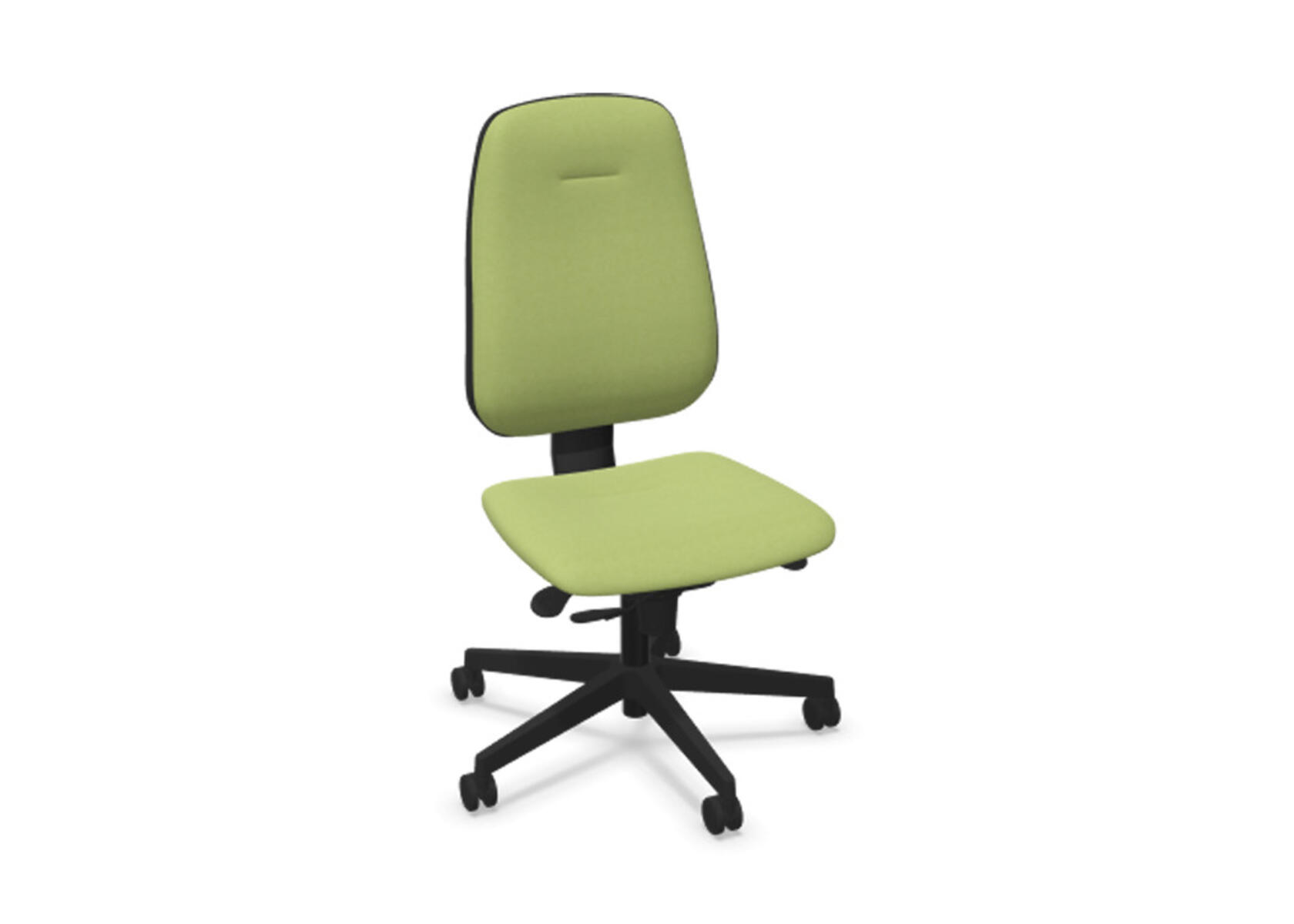 Ergonomisk kontorsstol med halvklädd medium rygg och synkronmekanism, utformad för att ge stöd vid aktivt sittande under hela arbetsdagen. Ryggstödslutningsvinkel 20° synkroniserad med sitslutningsvinkel 11°. Ryggstödet är låsbart i 5 olika lägen för individuell anpassning och du kan enkelt justera ryggstödets motstånd med ett vred. Ryggstödet är höjdjusterbart inom intervallet 75 mm med 13 låslägen. Stolen har även Anti-Shockfunktion vilket förhindrar att ryggstödet slår tillbaka när lutningen låses upp. Välj mellan kryss i svart polyamid eller polerad alu samt självbromsande hjul för mjuka eller hårda golv. Armstöd 2D, 3D alternativt 4D säljs separat.