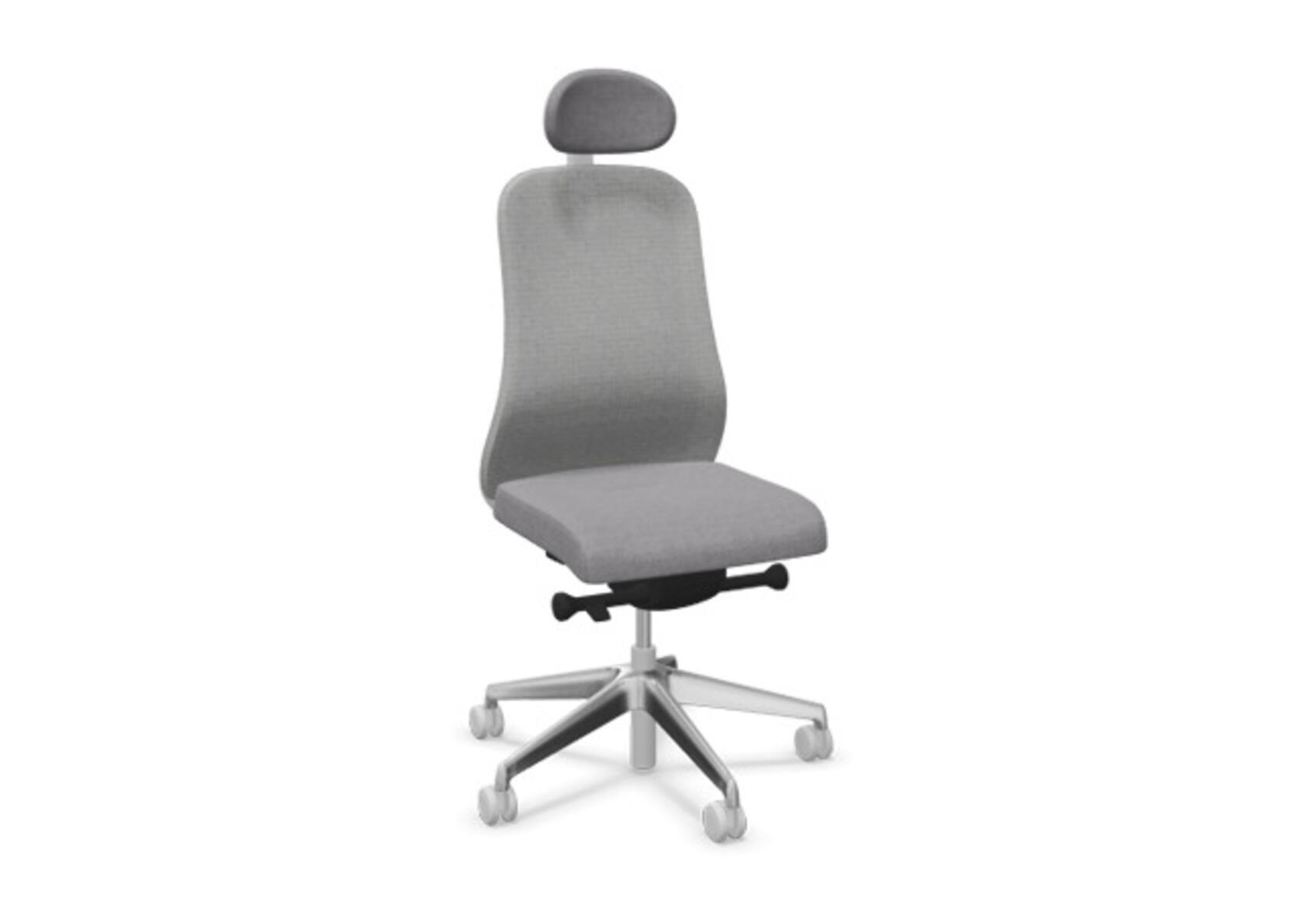 Modern och ergonomisk kontorsstol med halvklädd rygg och synkronmekanism samt sittdjupsjustering, utformad för att ge stöd vid aktivt sittande under hela arbetsdagen. Klädd i polyestertyg. Den synkroniserade lutningen av ryggstöd och sits möjliggör aktiv och bekväm sittställning. Ryggstödslutningsvinkel 21° synkroniserad med sitslutningsvinkel 7°. Ryggstödet är låsbart i 4 olika lägen samt utrustad med en funktion som automatisk justerar ryggstödets motstånd kopplat till användarens vikt och ger en möjlighet till ytterligare justering i 3 lägen. Ryggstödet är ej höjdjusterbart. Sittdjup är justerbart inom intervallet 60 mm, 7 låslägen. Stolen har även Anti-Shock funktion vilket förhindrar ryggstödet slår tillbaka när lutningen låses upp. Klätt nackstöd, justerbart inom intervaller: Djup 20 mm, vinkel 70° och höjd 100 mm. Välj mellan kryss i ljusgrå polyamid eller polerad alu samt självbromsande hjul för mjuka eller hårda golv. Som tillval finns även ländryggstöd, manuellt justerbart i höjd (55 mm). Armstöd 2D, 3D alternativt 4D säljs separat.