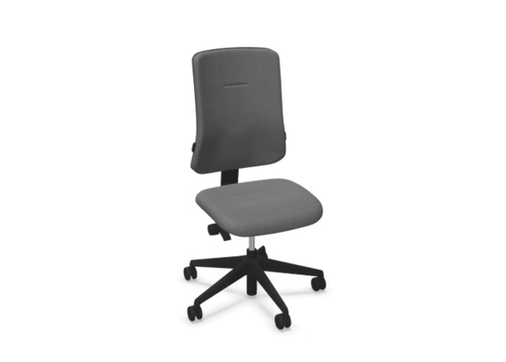 Ergonomisk kontorsstol med halvklädd rygg och synkronmekanism, utformad för att ge stöd vid aktivt sittande under hela arbetsdagen. Polyestertyg. Den synkroniserade lutningen av ryggstöd och sits möjliggör aktiv och bekväm sittställning. Ryggstödslutningsvinkel 20° synkroniserad med sitslutningsvinkel 11°. Ryggstödet är låsbart i 5 olika lägen för individuell anpassning och du kan enkelt justera ryggstödets motstånd med ett vred. Ryggstödet är höjdjusterbart inom intervallet 70 mm med 5 låslägen. Stolen har även Anti-Shock funktion vilket förhindrar ryggstödet slår tillbaka när lutningen låses upp. Välj mellan kryss i ljusgrå polyamid eller polerad alu samt självbromsande hjul för mjuka eller hårda golv. Som tillval finns även ländryggstöd, manuellt justerbart i djupled (15 mm) och i höjd (20 mm). Armstöd 2D, 3D alternativt 4D säljs separat.