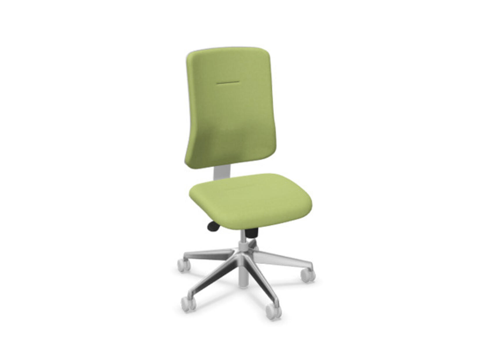 Ergonomisk kontorsstol med halvklädd rygg och synkronmekanism, utformad för att ge stöd vid aktivt sittande under hela arbetsdagen. Polyestertyg. Den synkroniserade lutningen av ryggstöd och sits möjliggör aktiv och bekväm sittställning. Ryggstödslutningsvinkel 20° synkroniserad med sitslutningsvinkel 11°. Ryggstödet är låsbart i 5 olika lägen för individuell anpassning och du kan enkelt justera ryggstödets motstånd med ett vred. Ryggstödet är höjdjusterbart inom intervallet 70 mm med 5 låslägen. Stolen har även Anti-Shock funktion vilket förhindrar ryggstödet slår tillbaka när lutningen låses upp. Välj mellan kryss i ljusgrå polyamid eller polerad alu samt självbromsande hjul för mjuka eller hårda golv. Som tillval finns även ländryggstöd, manuellt justerbart i djupled (15 mm) och i höjd (20 mm). Armstöd 2D, 3D alternativt 4D säljs separat.