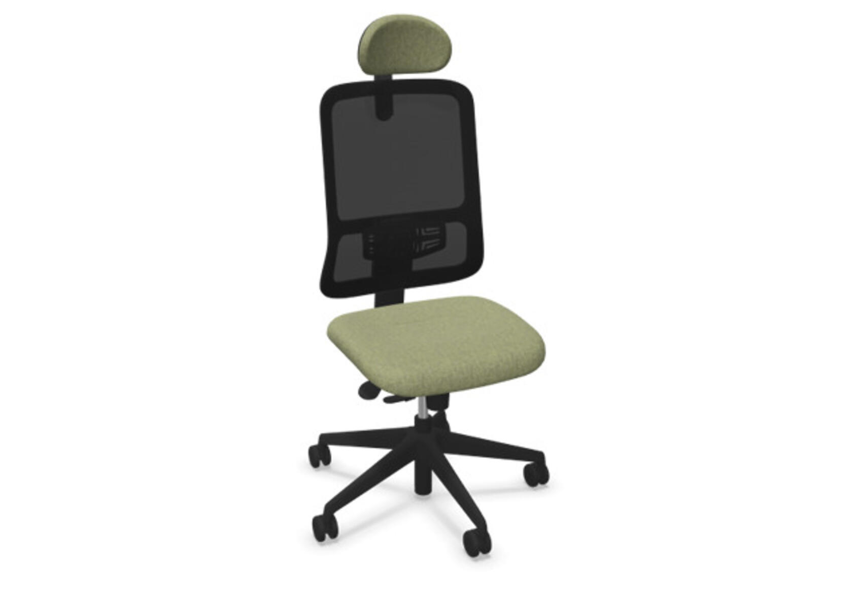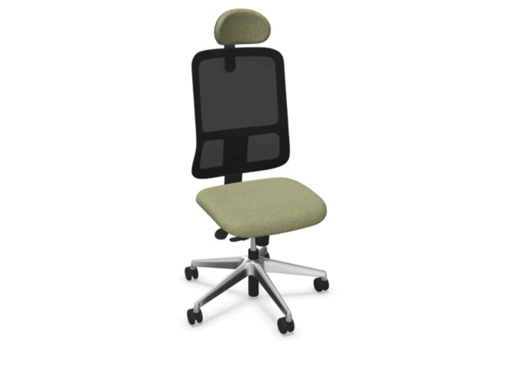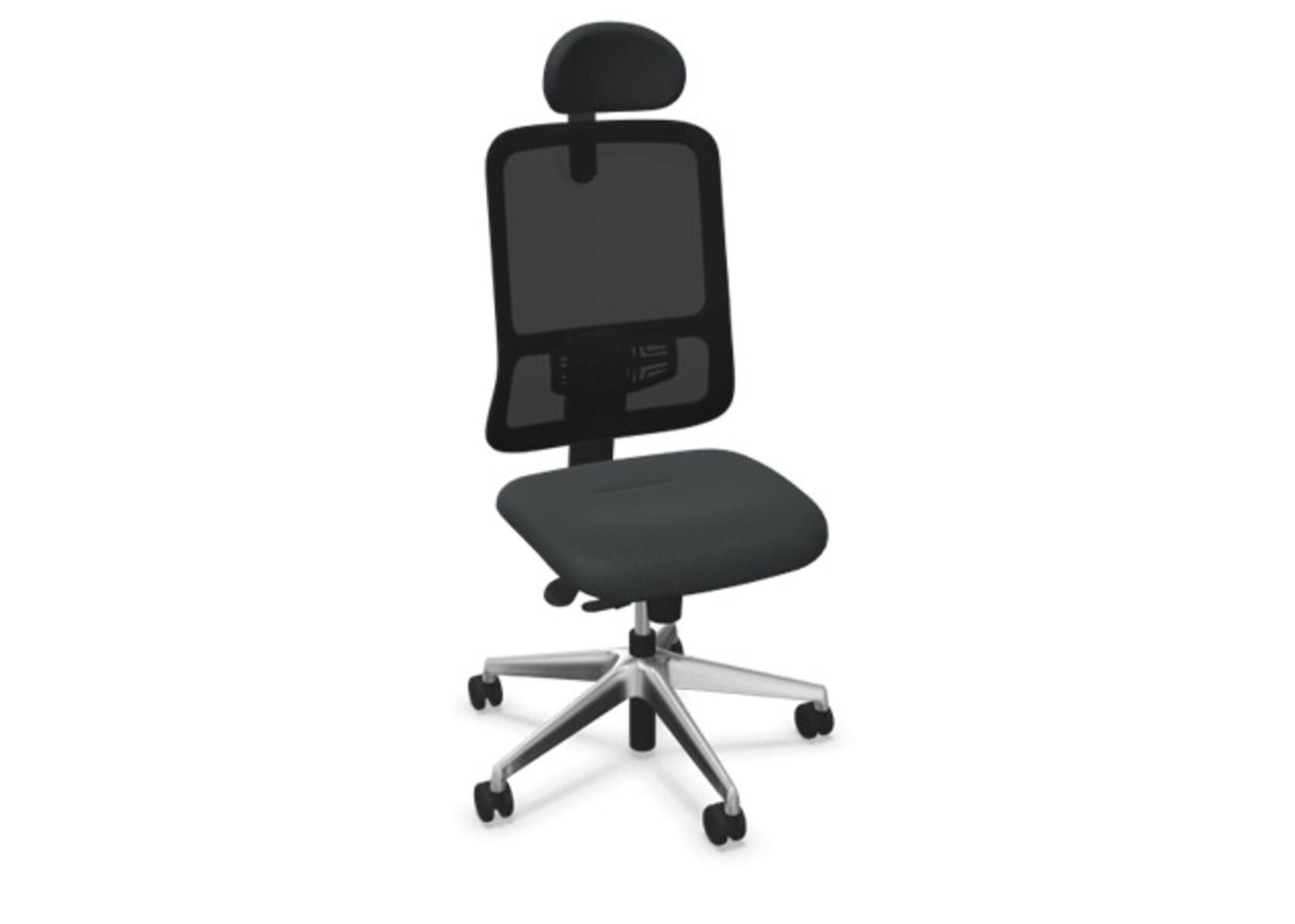 Ergonomisk kontorsstol med mesh rygg och synkronmekanism samt sittdjupsjustering, utformad för att ge stöd vid aktivt sittande under hela arbetsdagen. Klädd i polyestertyg. Den synkroniserade lutningen av ryggstöd och sits möjliggör aktiv och bekväm sittställning. Ryggstödslutningsvinkel 20° synkroniserad med sitslutningsvinkel 11°. Ryggstödet är låsbart i 5 olika lägen för individuell anpassning och du kan enkelt justera ryggstödets motstånd med ett vred. Ryggstödet är höjdjusterbart inom intervallet 70 mm med 5 låslägen. Klätt nackstöd, justerbart inom intervaller: Djup 20 mm, vinkel 70° och höjd 100 mm. Sittdjup är justerbart inom intervallet 50 mm. Stolen har även Anti-Shock funktion vilket förhindrar ryggstödet slår tillbaka när lutningen låses upp. Välj mellan kryss i svart polyamid eller polerad alu samt självbromsande hjul för mjuka eller hårda golv. Som tillval finns även ländryggstöd, manuellt justerbart i djupled (15 mm) och i höjd (20 mm). Armstöd 2D, 3D alternativt 4D säljs separat.