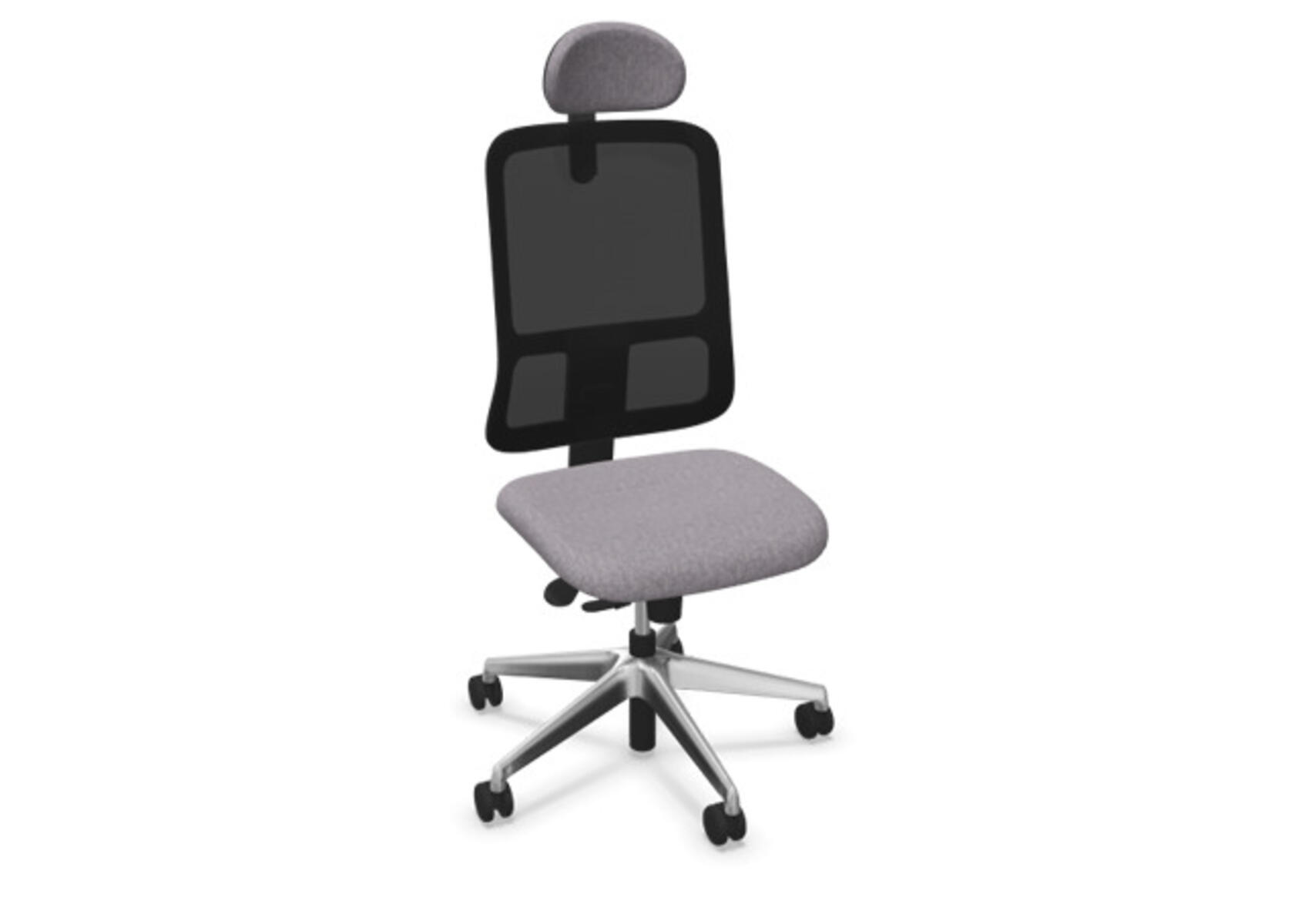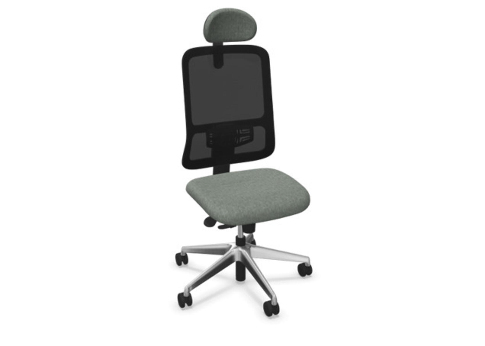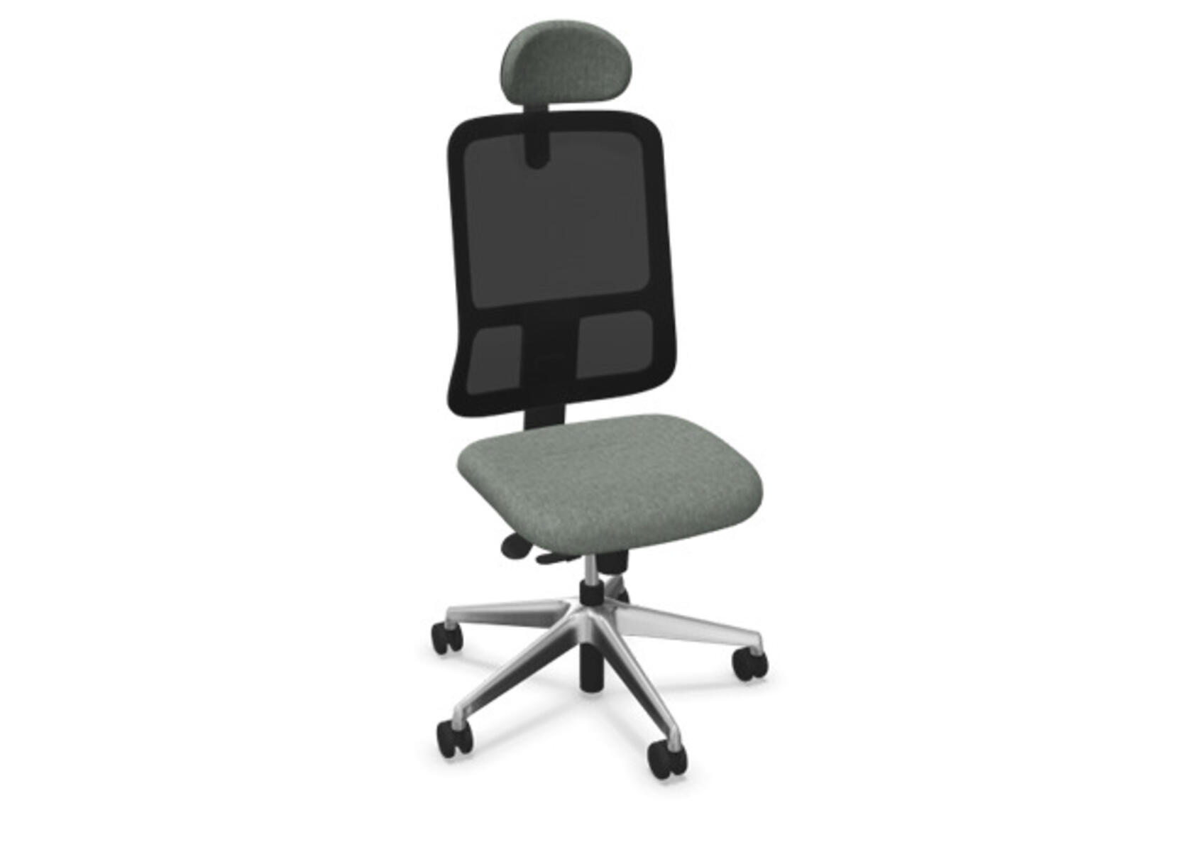 Ergonomisk kontorsstol med mesh rygg och synkronmekanism samt sittdjupsjustering, utformad för att ge stöd vid aktivt sittande under hela arbetsdagen. Klädd i polyestertyg. Den synkroniserade lutningen av ryggstöd och sits möjliggör aktiv och bekväm sittställning. Ryggstödslutningsvinkel 20° synkroniserad med sitslutningsvinkel 11°. Ryggstödet är låsbart i 5 olika lägen för individuell anpassning och du kan enkelt justera ryggstödets motstånd med ett vred. Ryggstödet är höjdjusterbart inom intervallet 70 mm med 5 låslägen. Klätt nackstöd, justerbart inom intervaller: Djup 20 mm, vinkel 70° och höjd 100 mm. Sittdjup är justerbart inom intervallet 50 mm. Stolen har även Anti-Shock funktion vilket förhindrar ryggstödet slår tillbaka när lutningen låses upp. Välj mellan kryss i ljusgrå polyamid eller polerad alu samt självbromsande hjul för mjuka eller hårda golv. Som tillval finns även ländryggstöd, manuellt justerbart i djupled (15 mm) och i höjd (20 mm). Armstöd 2D, 3D alternativt 4D säljs separat.