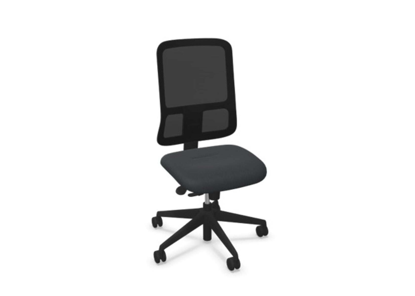 Ergonomisk kontorsstol med halvklädd rygg och synkronmekanism, utformad för att ge stöd vid aktivt sittande under hela arbetsdagen. Polyestertyg. Den synkroniserade lutningen av ryggstöd och sits möjliggör aktiv och bekväm sittställning. Ryggstödslutningsvinkel 20° synkroniserad med sitslutningsvinkel 11°. Ryggstödet är låsbart i 5 olika lägen för individuell anpassning och du kan enkelt justera ryggstödets motstånd med ett vred. Ryggstödet är höjdjusterbart inom intervallet 70 mm med 5 låslägen. Stolen har även Anti-Shock funktion vilket förhindrar ryggstödet slår tillbaka när lutningen låses upp. Välj mellan kryss i svart polyamid eller polerad alu samt självbromsande hjul för mjuka eller hårda golv. Som tillval finns även ländryggstöd, manuellt justerbart i djupled (15 mm) och i höjd (20 mm). Armstöd 2D, 3D alternativt 4D säljs separat.