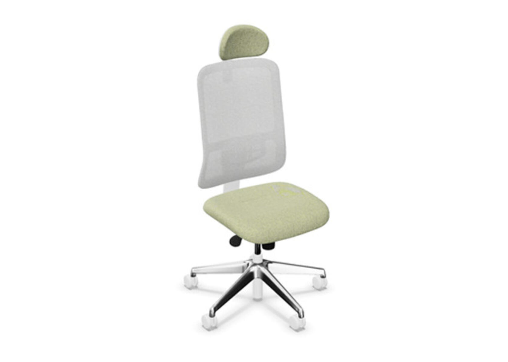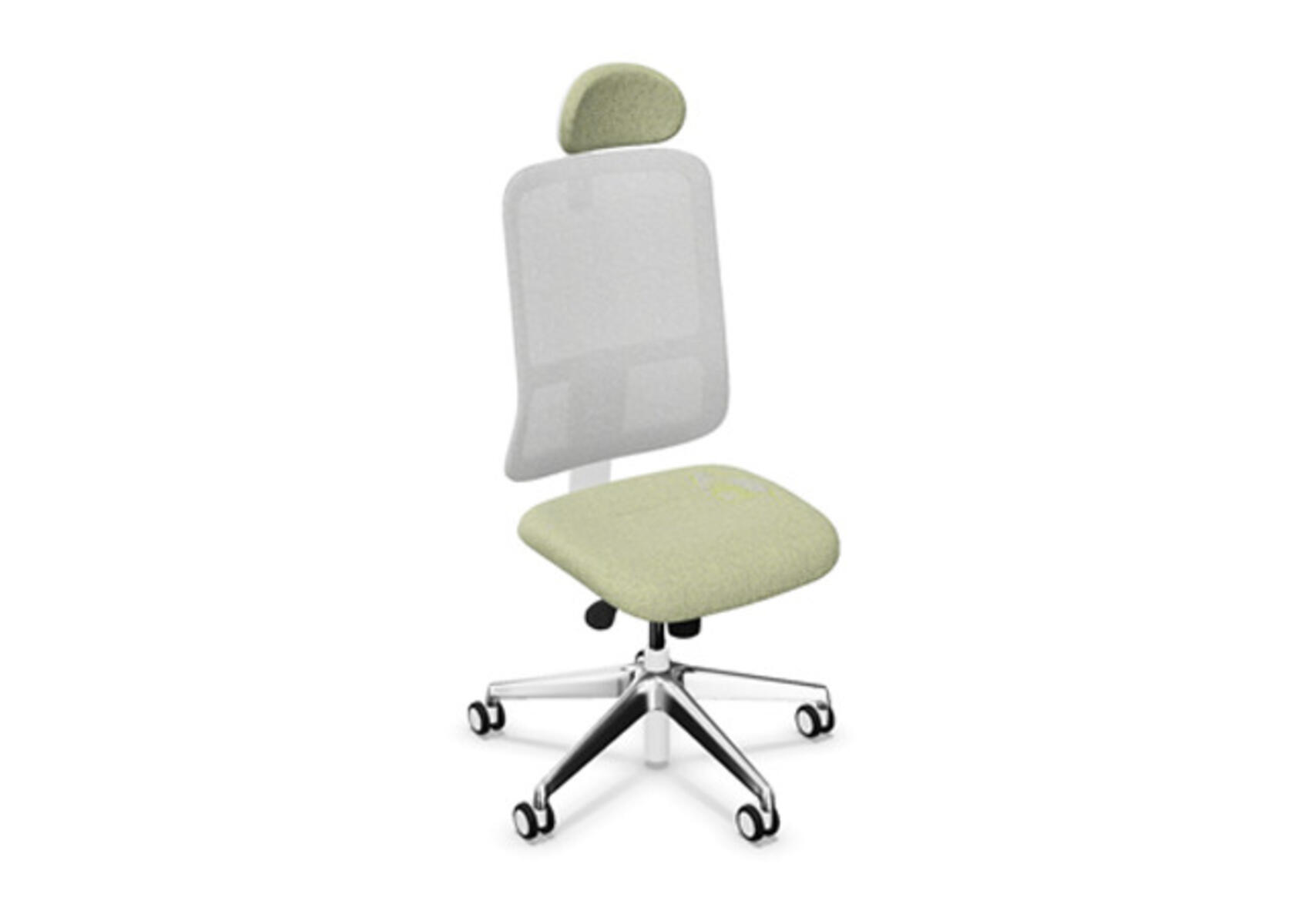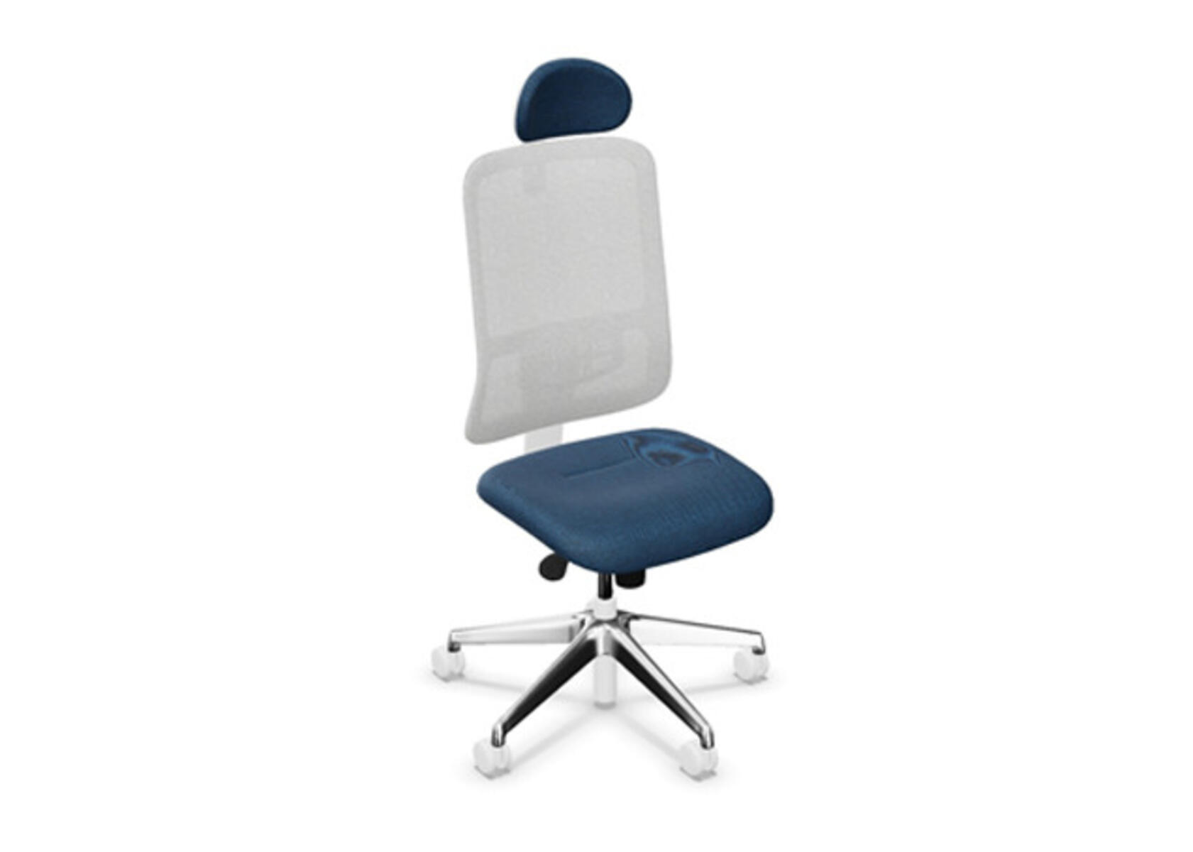 Ergonomisk kontorsstol med mesh rygg och synkronmekanism, utformad för att ge stöd vid aktivt sittande under hela arbetsdagen. Klädd i polyestertyg. Den synkroniserade lutningen av ryggstöd och sits möjliggör aktiv och bekväm sittställning. Ryggstödslutningsvinkel 20° synkroniserad med sitslutningsvinkel 11°. Ryggstödet är låsbart i 5 olika lägen för individuell anpassning och du kan enkelt justera ryggstödets motstånd med ett vred. Ryggstödet är höjdjusterbart inom intervallet 70 mm med 5 låslägen. Klätt nackstöd, justerbart inom intervaller: Djup 20 mm, vinkel 70° och höjd 100 mm. Stolen har även Anti-Shock funktion vilket förhindrar ryggstödet slår tillbaka när lutningen låses upp. Välj mellan kryss i ljusgrå polyamid eller polerad alu samt självbromsande hjul för mjuka eller hårda golv. Som tillval finns även ländryggstöd, manuellt justerbart i djupled (15 mm) och i höjd (20 mm). Armstöd 2D, 3D alternativt 4D säljs separat.
