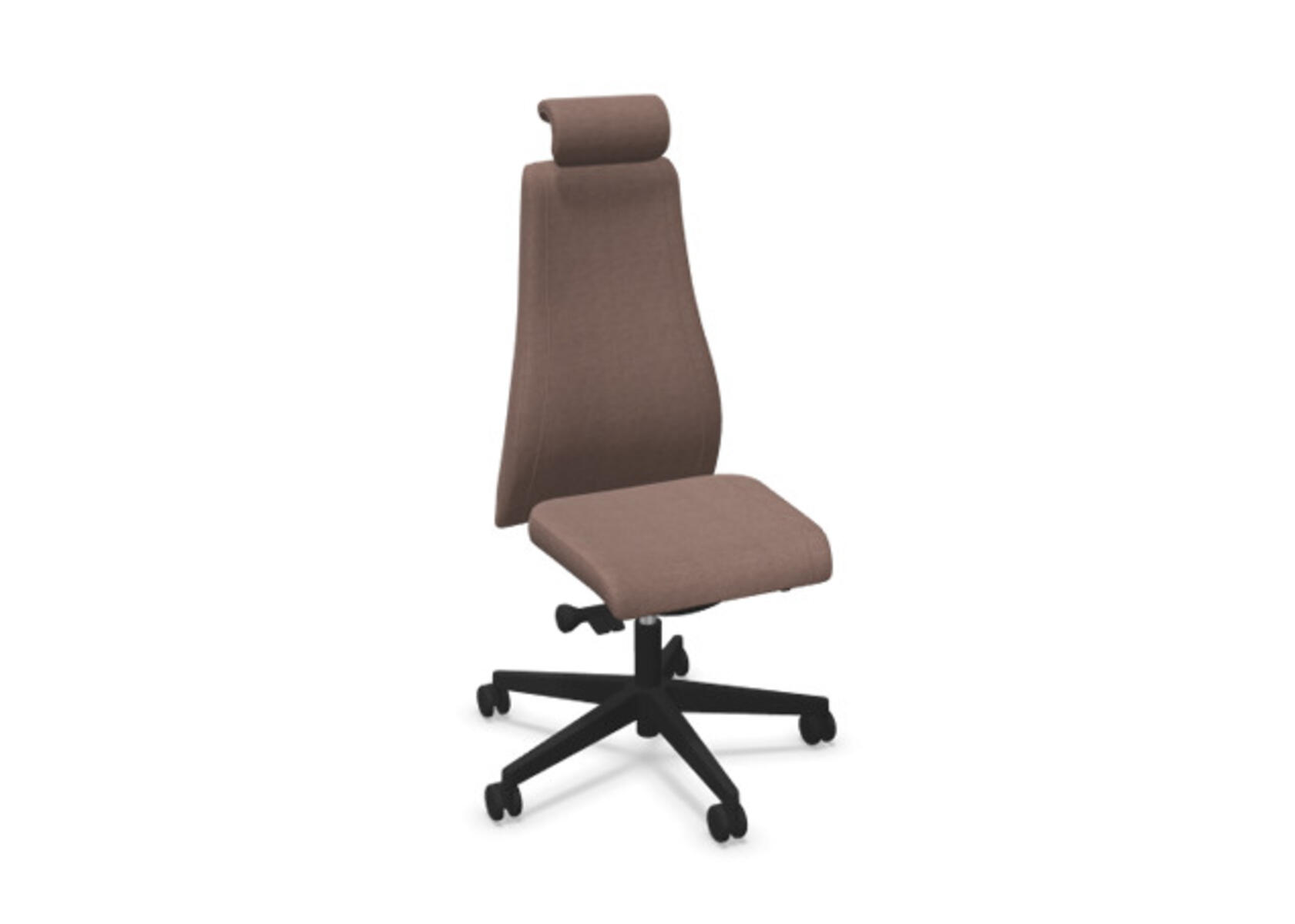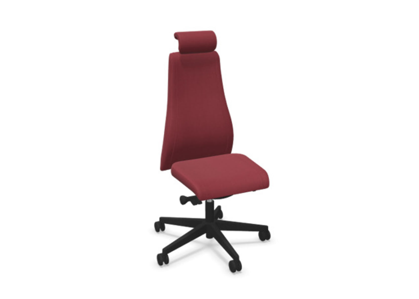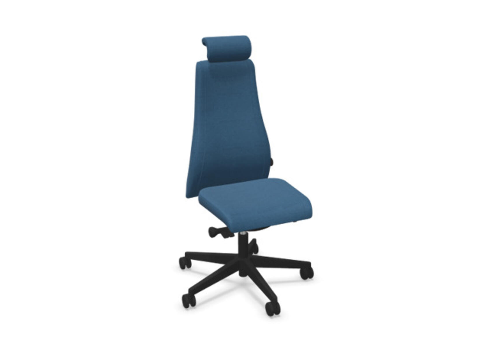 En stilren och ergonomisk kontorsstol med helklädd hög rygg och synkronmekanism, utformad för att ge stöd vid aktivt sittande under hela arbetsdagen. Klädd i polyestertyg. Den synkroniserade lutningen av ryggstöd och sits möjliggör aktiv och bekväm sittställning. Ryggstödslutningsvinkel 20° synkroniserad med sitslutningsvinkel 11°. Ryggstödet är låsbart i 5 olika lägen för individuell anpassning och du kan enkelt justera ryggstödets motstånd med ett vred. Ryggstödet är höjdjusterbart inom intervallet 70 mm med 13 låslägen. Justerbart, klätt nackstöd med vinkel-och höjdjustering inom intervallet 75 mm. Stolen har även Anti-Shock funktion vilket förhindrar ryggstödet slår tillbaka när lutningen låses upp. Välj mellan kryss i svart polyamid eller polerad alu samt självbromsande hjul för mjuka eller hårda golv. Som tillval finns även ländryggstöd, manuellt justerbart i djupled (20 mm) med hjälp av ett vred. Armstöd 2D, 3D alternativt 4D säljs separat.