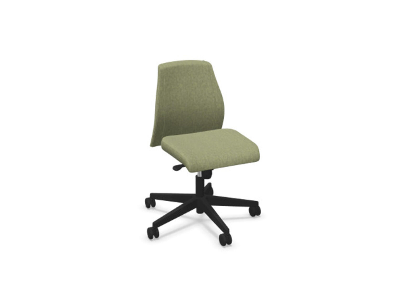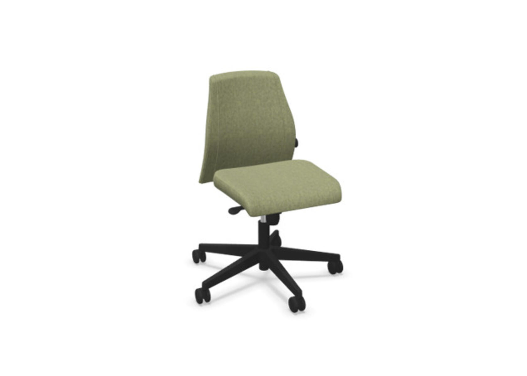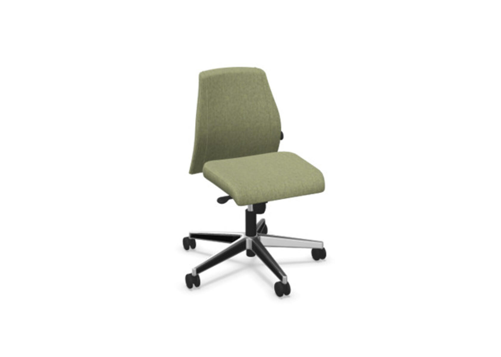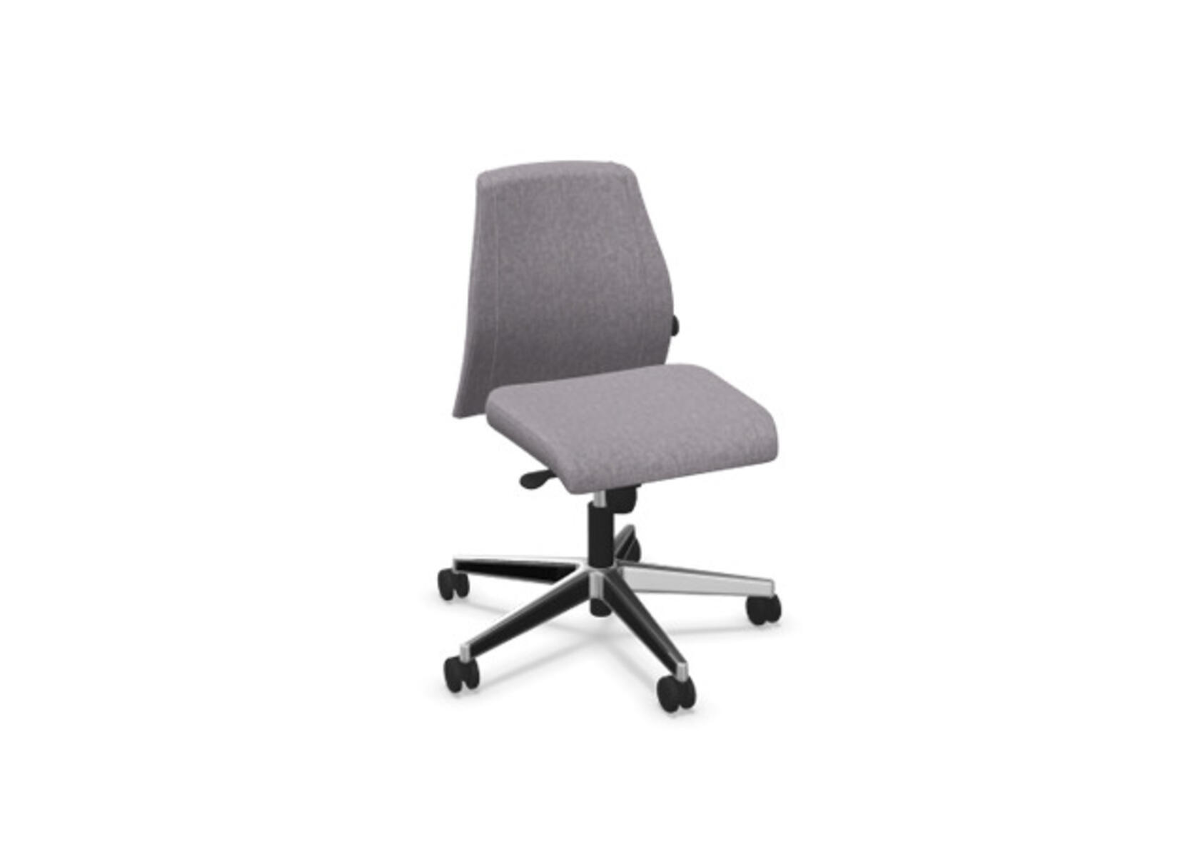 En stilren och ergonomisk kontorsstol med helklädd låg rygg och synkronmekanism, utformad för att ge stöd vid aktivt sittande under hela arbetsdagen. Klädd i polyestertyg. Den synkroniserade lutningen av ryggstöd och sits möjliggör aktiv och bekväm sittställning. Ryggstödslutningsvinkel 20° synkroniserad med sitslutningsvinkel 11°. Ryggstödet är låsbart i 5 olika lägen för individuell anpassning och du kan enkelt justera ryggstödets motstånd med ett vred. Ryggstödet är höjdjusterbart inom intervallet 70 mm med 13 låslägen. Stolen har även Anti-Shock funktion vilket förhindrar ryggstödet slår tillbaka när lutningen låses upp. Välj mellan kryss i svart polyamid eller polerad alu samt självbromsande hjul för mjuka eller hårda golv. Som tillval finns även ländryggstöd, manuellt justerbart i djupled (20 mm) med hjälp av ett vred. Armstöd 2D, 3D alternativt 4D säljs separat.