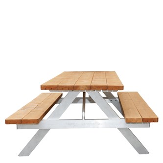Stort och stabilt med fasta bänkar. Levereras omonterat. Mått: L: 230 cm, sitthöjd 44 cm. Bordsskivans bredd 70,8 cm. Förzinkat underrede. Bordsskiva och bänkar i oljad furu. Vi rekommenderar behandling med vattenbaserad träolja innan användning utomhus. Upprepa behandlingen vid behov.
