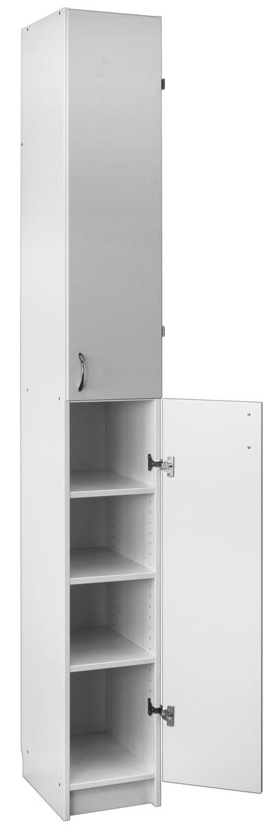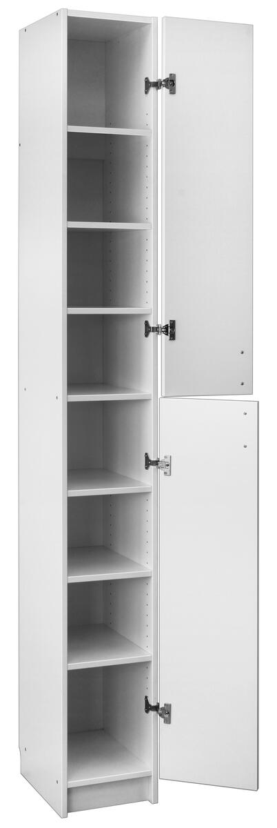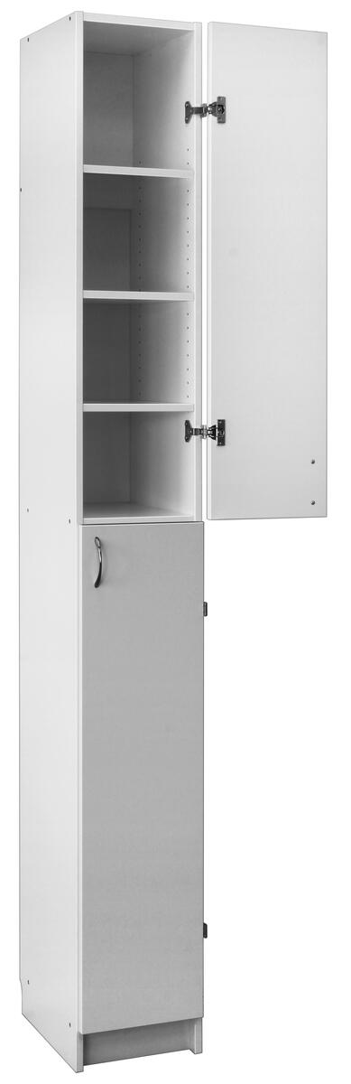 Sängskåp med två sängar som du lätt får fram när det är dags för vila. När barnen har vilat klart är det bara att fälla upp sängarna och stänga dörren så kan ytan användas för lek. Skåpet är försett med en högerhängd dörr som har en tryckknapp med säkerhetslåsning. Våningssängsstomme i vitmålad MDF. Övre bädd har höga fastmonterade stödbrädor av björk. Lätt att lyfta upp sängen med hjälp av gasfjädern. Bäddmått: L140xB53 cm. Skåpets mått: B71xD41xH239 cm. Skåpet är i vit melamin. Sängskåpet bör alltid fästas i väggen. Under sockeln finns små plaststift (höjd 5 mm). Levereras monterad. Vikt 100 kg.