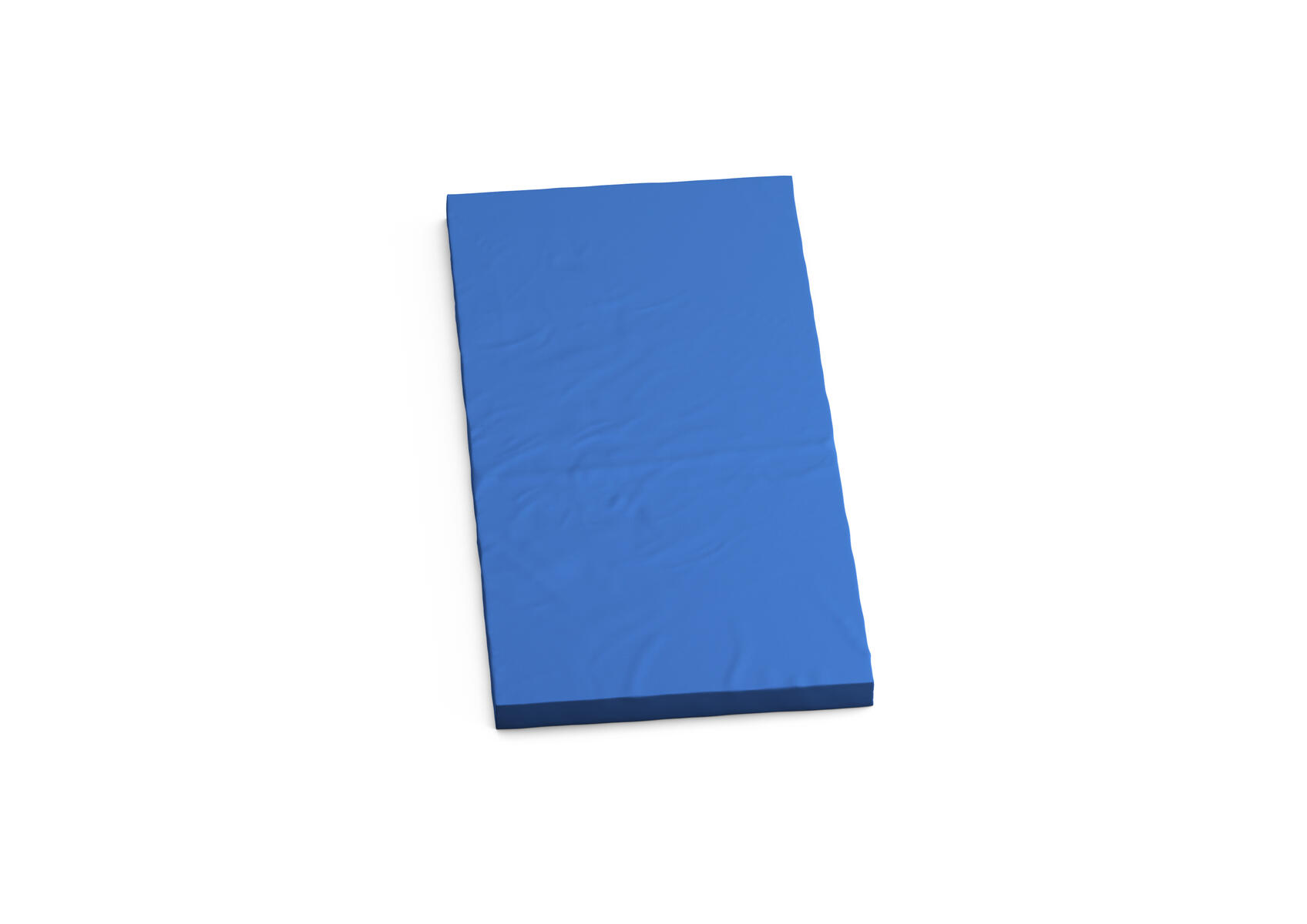 Svanenmärkt vilmadrass helt utan PVC med kallskumskärna. Blå. Mått: 117x54x4 cm utfälld, 117x27x8 cm ihopvikt. Blått fodral av 2-skiktsmaterial bestående av 49 % polyuretan och 51 % polyesterväv. Vattentät. Avtorkningsbar med våt trasa och maskintvätt i upp till 60 °C. Svanenmärkt, licensnummer 3031 0084.