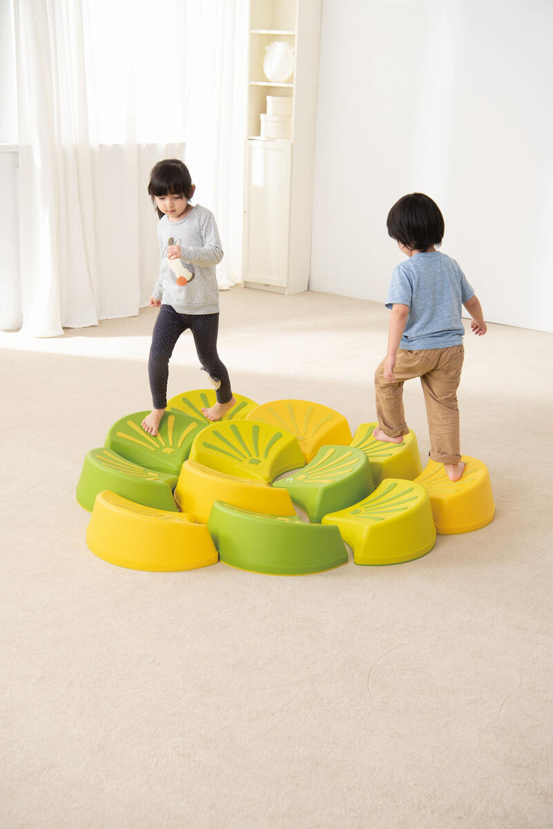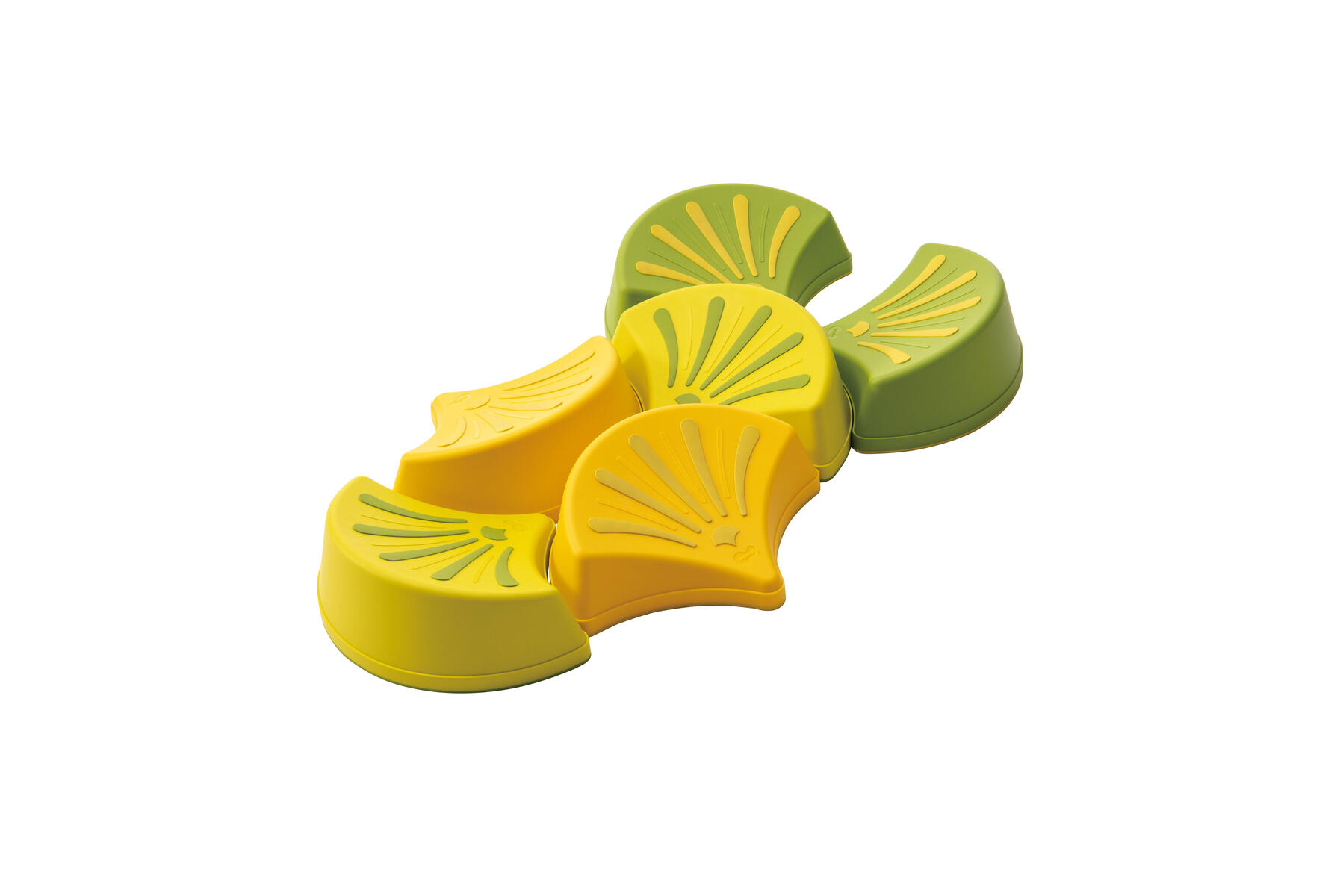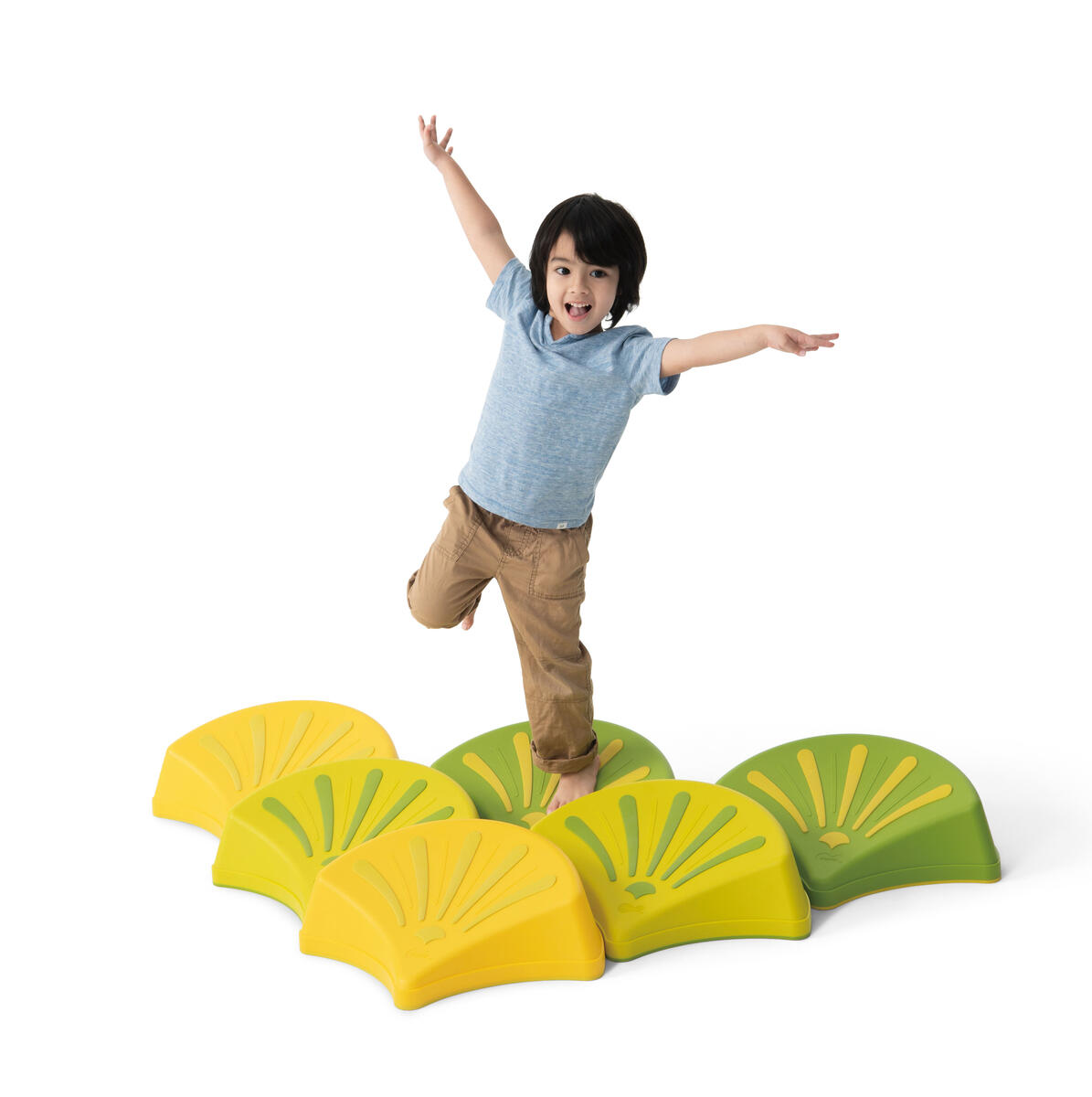 6 st/fp. Ett set för träning av balans, koordination och motorik. Den unika snäckformationen ger en större variation än vanliga stenar då de har både smalare och bredare delar samt lutar. Stenarna är staplingsbara och utrustade med halkskydd. Mått: 51,4x39,6x16,9 cm. Maxvikt 60 kg. Av PP och TPR. PVC-fri. Från 2 år.