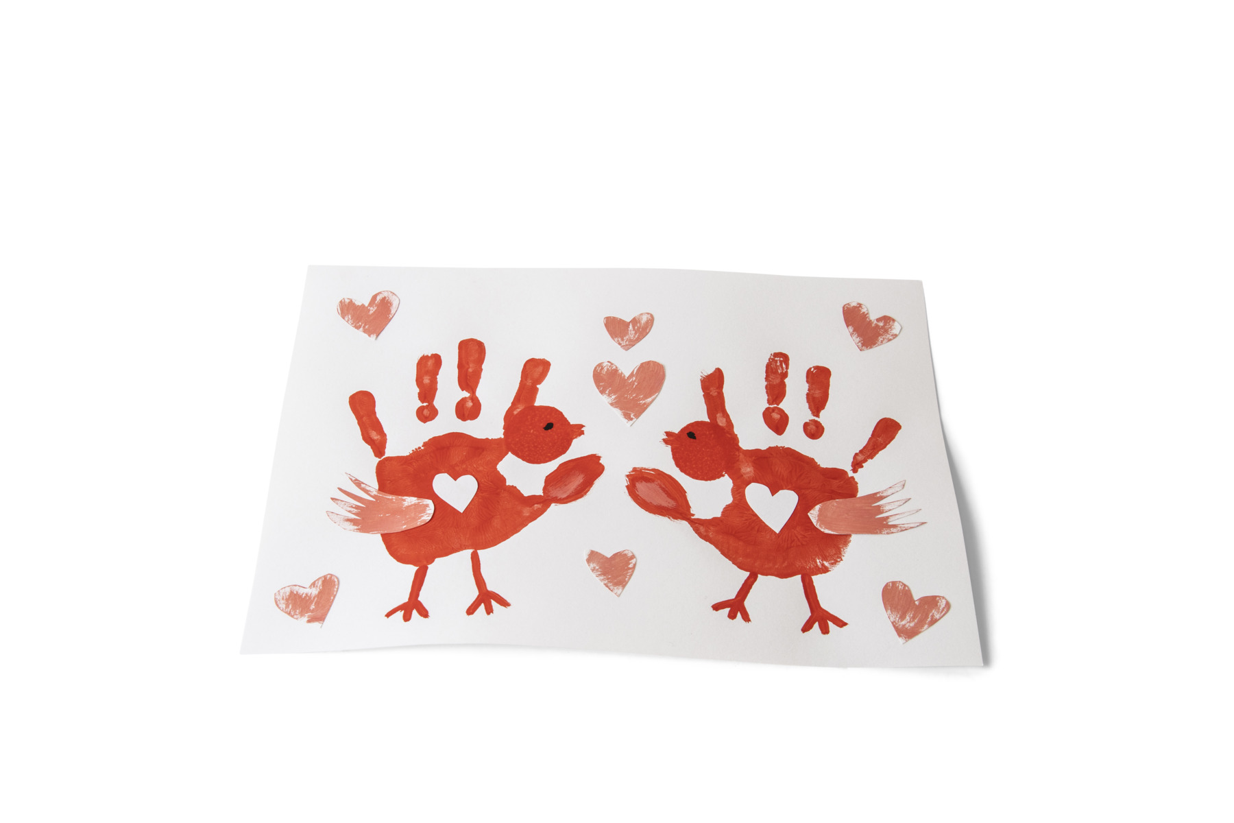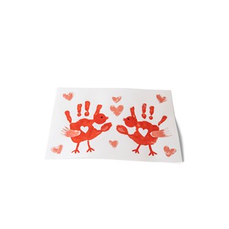 - Måla barnets händer med röd färg. Gör handavtryck av händerna på ett vitt A4-papper.