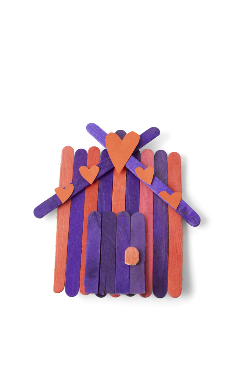 - Limma samman två glasspinnar på diagonalen och limma fast som tak.