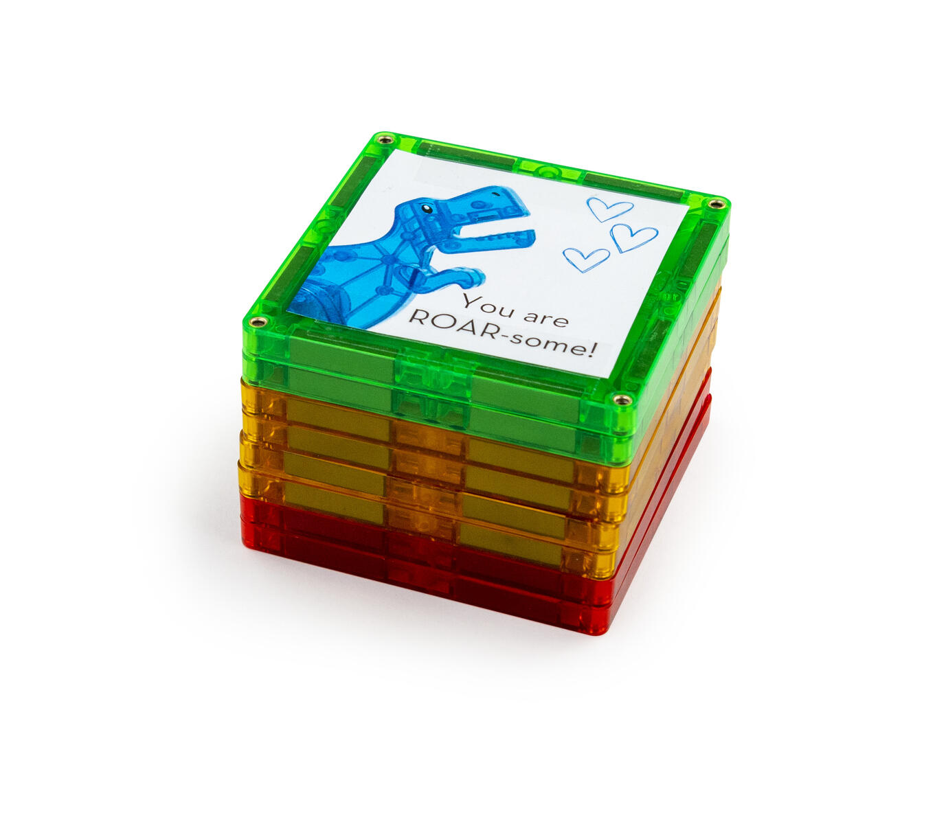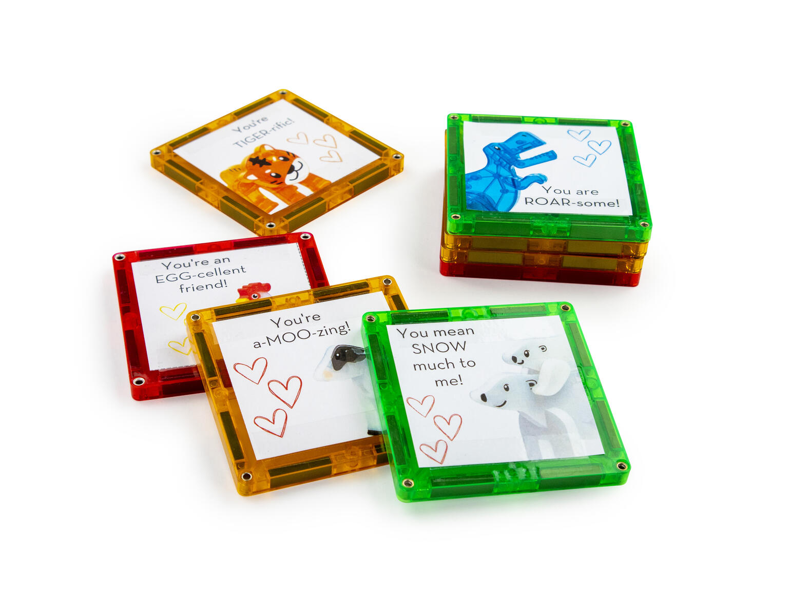 - Fäst komplimangen på ena sidan av en Magna-Tiles-kvadrat med tejp. Finns det inga Magna-Tiles till hands? Ta din utskrift och tejpa den till en bit färgat konstruktionspapper istället. Om du skickar ut dessa till vänner, fäst till-/frånkortet på baksidan.